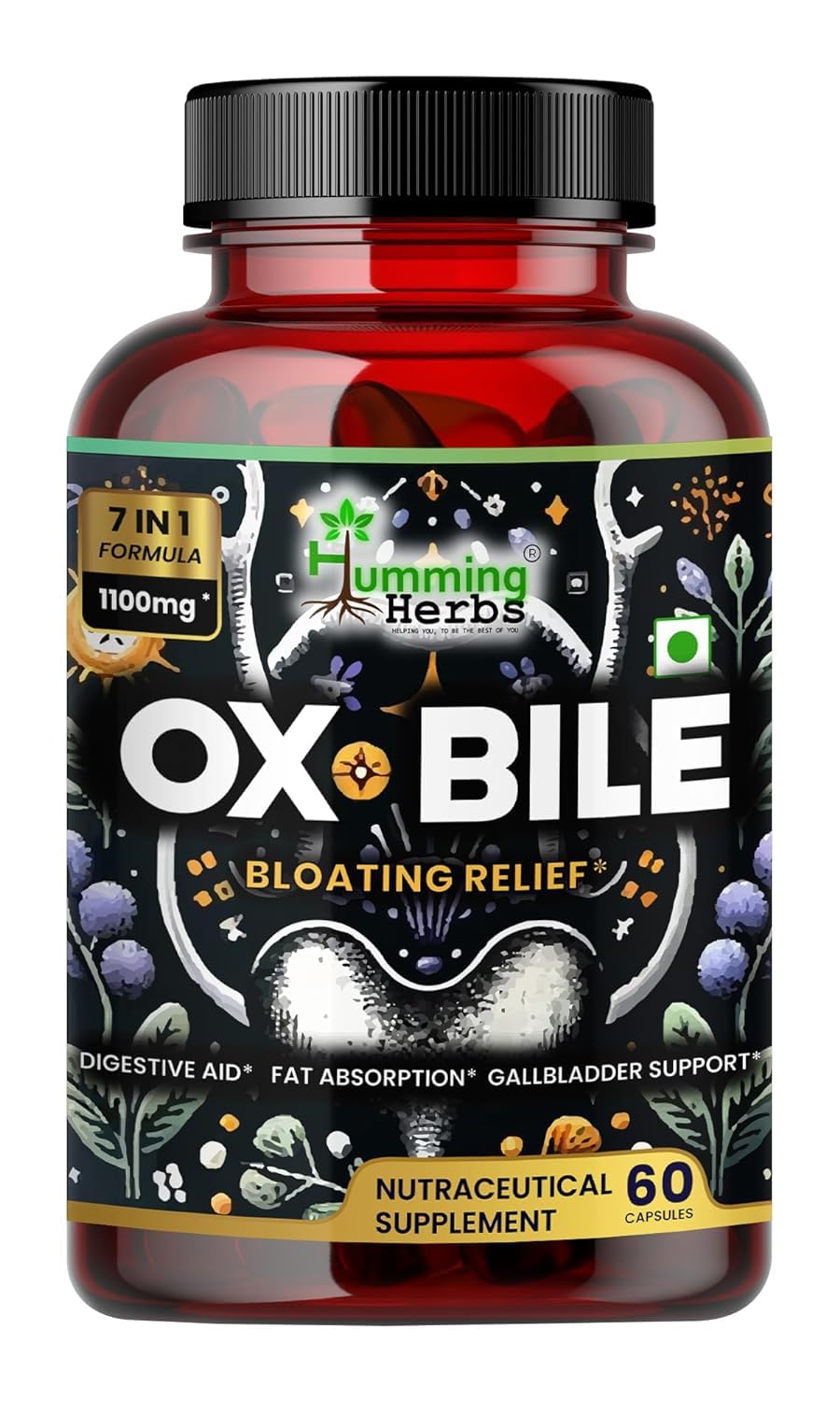 Experience the digestive support you need with Ox Bile Extract, a robust 1100mg blend specifically formulated for enhanced digestion and bloating relief. Our unique formula not only aids in the efficient breakdown and absorption of fats but also supports healthy gallbladder function. Infused with Ox Bile extract, our supplement is complemented by Inulin and Betaine HCL to encourage a balanced gut flora and optimized digestive process. The addition of Probiotics fosters gut health, while Turmeric offers anti-inflammatory benefits and Peppermint Leaf Extract soothes the digestive tract. Bromelain, extracted from pineapple, rounds out our 7-in-1 formula by assisting in protein digestion. Ideal for those looking to maintain a healthy, smoothly functioning digestive system, our supplement is a natural choice for your wellness routine.?: ? to aid protein digestion and nutrient absorption. ?: ? Peppermint Leaf Extract to calm the digestive system. ?-?: ? of Turmeric extract for its potent anti-inflammatory properties. ?: ? live cultures to enhance gastrointestinal health and immunity. ?: ? Aids in the digestion of proteins and the production of digestive enzymes. ?: ? With Inulin to support gut health and balance intestinal flora. ?: ? Helps maintain healthy gallbladder function and bile flow. ?: ? Optimizes the breakdown and uptake of dietary fats, enhancing nutrient availability. ?: ? 1100mg Ox Bile Extract per serving to promote efficient digestion and ease bloating.