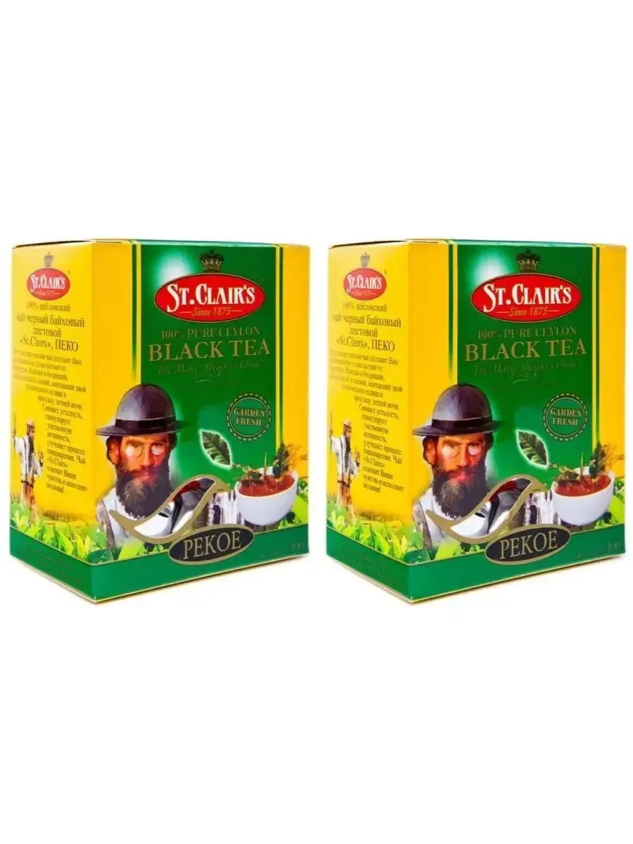 В комплекте 2 упаковки по 100 гр. St.Clairs, Чай черный, Pekoe. Чай из скрученных в шарообразную форму листьев. При заваривании чайные листочки распускаются и получается превосходный напиток с нежным вкусом и мягким ароматом. Нежный и бодрящий, насыщенный и свежий, впитавший зной тропического солнца и прохладу летней ночи. Снимает усталость, стимулирует умственную активность, улучшает процесс пищеварения.