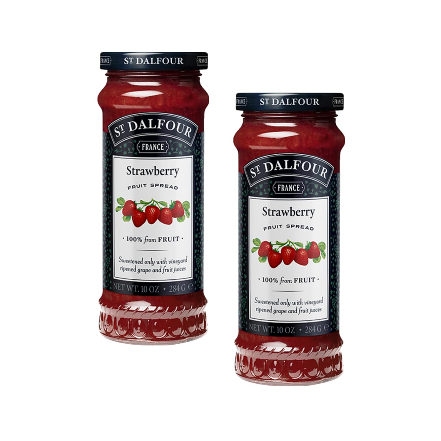 SAINT-DALFOUR The story of St. Dalfour begins in the French countryside during the First World War, where so many people faced extreme shortages of basic foodstuffs. To make ends meet, friends relied on each other's generosity. One such friend was a neighboring winemaker who gave our founder's grandfather some grape must, a sweet by-product of winemaking, to use as a substitute for the limited supply of white sugar. "Strawberries": a sweet jam made with grape sugar and date syrup, based on an old traditional French recipe that preserves its unique taste and delicious aroma. Made in France. (2 x 284 grams). [THE PRODUCT] - Saint Dalfour is a handcrafted product made according to a family recipe using traditional French methods and the highest quality natural ingredients. [TRADITION] - The story begins after the end of the 19th century, in the vineyards of Aquitaine, in a splendid landscape hidden between the Pyrenees and Bordeaux, nicknamed the Garden of France. [ANCIENT METHOD] - Passed down through three generations, the recipe uses only 100 fruit with sun-ripened grape must as a natural sweetener. The grape must, a sweet by-product of winemaking, creates a healthier jam. [MAIN INGREDIENT] - The fruit always comes from regional farms, and the same production process is used in small batches with meticulous care. [CRAFTSMANSHIP] - The Master Jam Maker uses only the finest ingredients, gently cooking carefully selected fruits and juices in traditional kettles. No artificial additives, sugars, or preservatives. INGREDIENTS Strawberries 51 , grape and date fruit sugars, lemon juice, gelling agent: pectin.St Dalfour Confiture de Fraises - 2 x 284 Gr Pot de confiture en verreDESCRIPTION DU PRODUIT DESCRIPTION DU PRODUIT SAINT-DALFOUR L'histoire de St. Dalfour commence dans la campagne française pendant la Première Guerre mondiale, où tant de personnes étaient confrontées à des limitations extrêmes en matière d'aliments de base. Pour s'accommoder, les amis comptaient sur la générosité des uns et des autres. L'un de ces amis était un vigneron voisin qui a donné au grand-père de notre fondateur du moût de raisin, un sous-produit sucré de la vinification, pour l'utiliser comme substitut au sucre blanc dont l'offre était limitée. "Fraises" : confiture sucrée au sucre de raisin et au sirop de dattes obtenue sur la base d'une ancienne recette traditionnelle française qui préserve son goût inimitable et son arôme délicieux. Fabriqué en France. (2 x 284 grammes). [LE PRODUIT] - Saint Dalfour est un produit fabriqué artisanalement selon une recette familiale avec des méthodes typiquement françaises et des ingrédients naturels de la plus haute qualité. [TRADITION] - L'histoire commence après la fin du XIXème siècle, dans les vignobles d'Aquitaine, dans un splendide paysage caché entre Pyrénées et Bordeaux, surnommé le jardin de la France. [MÉTHODE ANCIENNE] - Transmise sur trois générations, la recette utilise uniquement 100 de fruits avec du moût de raisin mûri au soleil comme édulcorant naturel. Le moût de raisin, sous-produit sucré de la vinification, crée une confiture plus saine. [INGRÉDIENT PRINCIPAL] - Le fruit provient toujours de cultures régionales et le même processus de fabrication est utilisé en petits lots et avec une forte intensité de travail. [ARTISANAT] - Le Maître Confiturier utilise uniquement les meilleurs ingrédients en cuisinant délicatement des fruits et jus de fruits soigneusement sélectionnés dans des bouilloires traditionnelles. Sans additifs artificiels, sucres ou conservateurs. INGRÉDIENTS Fraises 51 , sucres de fruits de raisin et de datte, jus de citron, gélifiant: pectine.