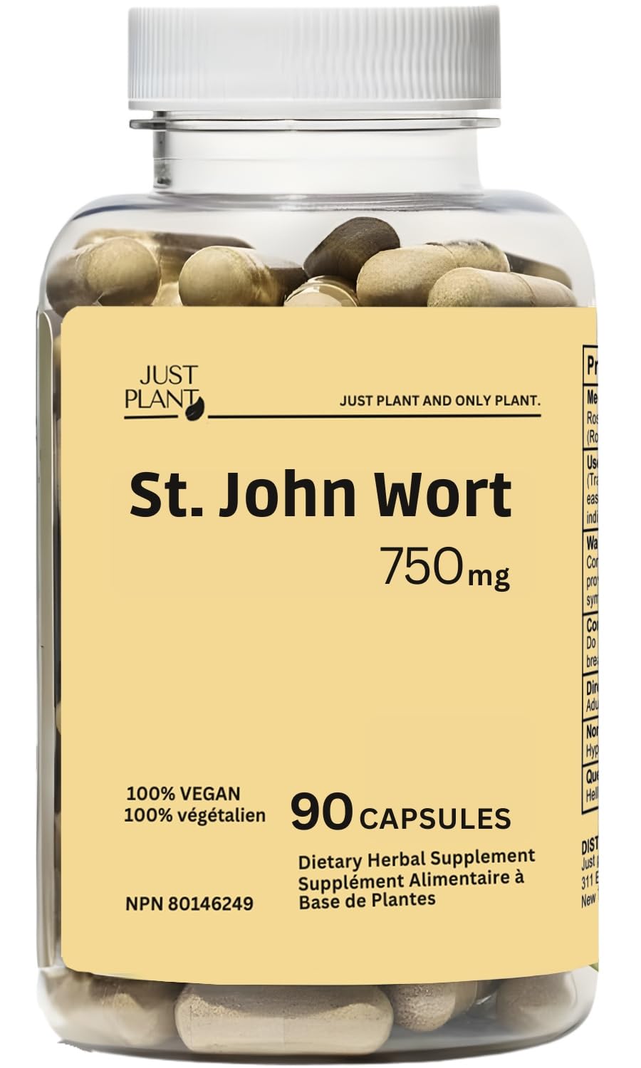 St. John s Wort Supplement 750 mg 90 Vegan Capsules | Natural Stress Support | with Hypericum Perforatum Extract Herbal Mood & Stress Support Gluten-Free Non-GMO