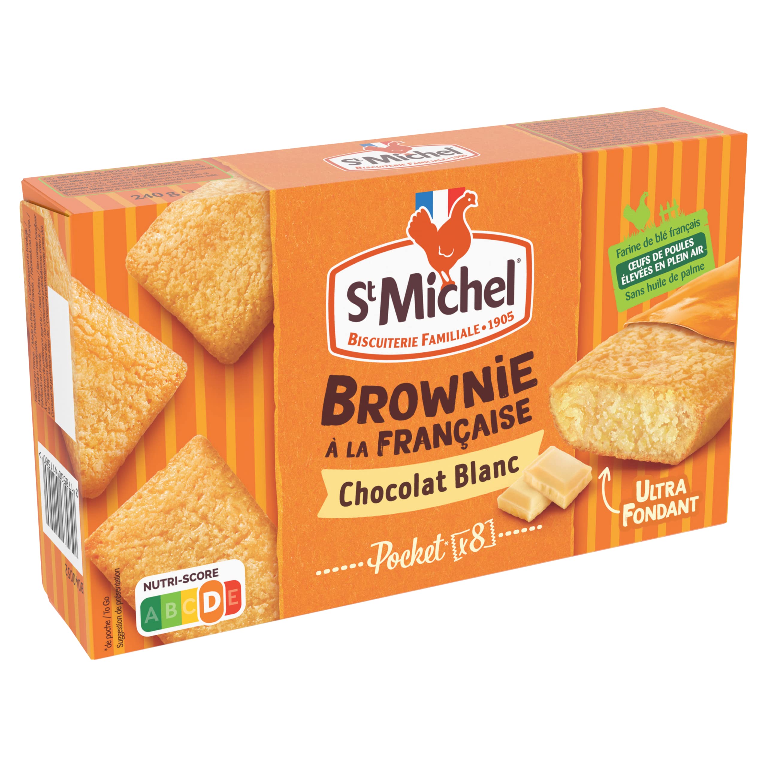 Rediscover the St Michel style brownie, a cake with good white chocolate and a super melting texture. A practical individual format to take away, to treat yourself at any time of the day. A simple and authentic recipe with good ingredients: eggs from free-range chickens, French wheat flour from a sustainable source, without palm oil. Our brownies are made in France in our family biscuit factory, in Contres in the Center of France. St Michel, French biscuits of gourmet origin! INGREDIENTS white chocolate 23 (sugar, cocoa butter, whole MILK powder, emulsifier: lecithins (SOYA), natural vanilla flavor), EGGS from free-range chickens 21.5 , rapeseed oil, sugar, WHEAT flour 12.5 , stabilizer: glycerol, glucose syrup, skimmed MILK powder, starch, flavor, salt. Possible traces of soy and nuts. DIRECTIONS FOR USE Best consumed before the expiration date SAFETY WARNING keep dry and away from heat DISCLAIMER Non-contractual photography. The above indications are given for information purposes. They are not necessarily exhaustive and cannot replace the information appearing on the product packaging which alone is authentic, and to which you are invited to refer, particularly in the event of food intolerance. ST MICHEL: We perpetuate the taste of good products, because the best ingredients make the best recipes. WHERE: Our brownies are made in France in our family biscuit factory. IN DETAIL: free-range eggs, white chocolate, rapeseed oil, sugar, wheat flour, stabilizer, glucose-fructose syrup, whole milk powder, starch, raising agents, flavoring, salt. May contain traces of soy and nuts. GOOD PRODUCTS: A simple and authentic recipe with good ingredients: free-range eggs, French wheat flour from a sustainable source, palm oil free. RECIPE: Rediscover the St Michel-style brownie, a cake with good white chocolate and a super melt-in-the-mouth texture. Redécouvrez le brownie façon St Michel, un gâteau au bon chocolat blanc et à la texture super fondante. Un format individuel pratique à emporter, pour se faire plaisir à tout moment de la journée. Une recette simple et authentique avec de bons ingrédients : des oeufs de poules élevées en plein air, de la farine de blé français issu d'une filière durable, sans huile de palme. Nos brownies sont fabriqués en France dans notre biscuiterie familiale, à Contres dans le Centre de la France. St Michel, biscuits français d'origine gourmande ! INGRÉDIENTS chocolat blanc 23 (sucre, beurre de cacao,LAIT entier en poudre, émulsifiant : lécithines (SOJA),arôme naturel de vanille), ŒUFS de poules élevées en plein air 21.5 , huile de colza, sucre, farine de BLÉ 12.5 ,stabilisant : glycérol, sirop de glucose, LAIT écrémé en poudre, fécule, arôme, sel. Traces éventuelles de soja et de fruits à coque. MODE D'EMPLOI A consommer de préférence avant la date de peremption AVERTISSEMENT DE SÛRETÉ à conserver au sec et à l'abri de la chaleur CLAUSE DE NON-GARANTIE Photographie non contractuelle. Les indications ci-dessus sont données à titre d'information. Elles ne sont pas forcément exhaustives et ne sauraient se substituer aux informations figurant sur l'emballage du produit qui font seules foi, et auxquelles vous êtes invités à vous reporter, notamment en cas d'intolérance alimentaire. ST MICHEL : Nous perpétuons le goût des bons produits, car les meilleurs ingrédients font les meilleures recettes. OÙ : Nos brownies sont fabriqués en France dans notre biscuiterie familiale. EN DETAIL : œufs de poules élevées en plein air, chocolat blanc, huile de colza, sucre, farine de blé, stabilisant, sirop de glucose-fructose, lait entier en poudre, fécule, poudres à lever, arôme, sel. Traces éventuelles de soja et de fruits à coque. DE BONS PRODUITS : Une recette simple et authentique avec de bons ingrédients : des oeufs de poules élevées en plein air, de la farine de blé français issu d'une filière durable, sans huile de palme. RECETTE : Redécouvrez le brownie façon St Michel, un gâteau au bon chocolat blanc et à la texture super fondante.