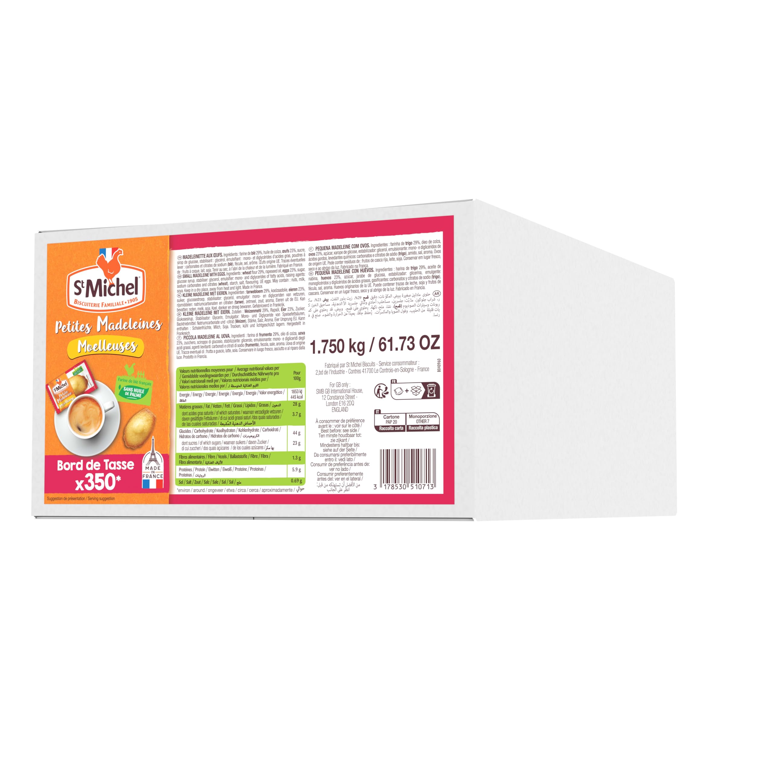 Finally, something soft to accompany your coffee! This delicious mini madeleine with a 5g shell, beautifully fluted and rounded, will delight your guests with its extra soft and melting texture. The inimitable taste of St Michel coffee madeleines. INGREDIENTS INGREDIENTS: WHEAT flour 29 , rapeseed oil, EGGS 23 , sugar, glucose syrup, stabilizer: glycerol, emulsifier: mono- and diglycerides of fatty acids, raising agents: sodium carbonates and citrates (WHEAT), starch, salt, flavoring. INSTRUCTIONS FOR USE 1 to 2 mini madeleines to accompany your coffee or tea ST MICHEL: Creating good products, well-made with good ingredients: this is the hallmark that has made our reputation. WHERE: Our madeleines are made in our family biscuit factory. IN DETAIL: Wheat flour, non-hydrogenated rapeseed oil, free-range eggs, sugar, stabilizer, emulsifier, raising agents, starch, salt, flavoring. Contains soy. May contain traces of milk and nuts. GOOD PRODUCTS: A simple and authentic recipe with good ingredients: free-range eggs, French wheat flour from a sustainable source, palm oil-free. RECIPE: Discover the inimitable know-how of St Michel in our soft and melting madeleines in convenient freshness bags to take anywhere. Enfin du moelleux en accompagnement café ! Gourmande, cette mini madeleine coquille de 5g joliement cannelée et arrondie ravira vos convives par sa texture extra moelleuse et fondante. Le goût inimitable des madeleines St Michel au café. INGRÉDIENTS INGREDIENTS: farine de BLE 29 , huile de colza, OEUFS 23 , sucre, sirop de glucose, stabilisant: glycérol, émulsifiant: mono- et diglyoérides d'acides gras, poudres à lever: carbonates et citrates de sodium (BLE), fécule, sel, arome. MODE D'EMPLOI 1 à 2 mini madeleine pour accompagner votre café ou thé ST MICHEL : Créer des bons produits, bien faits avec de bons ingrédients : voilà la marque de fabrique qui fait notre renommée. OÙ : Nos madeleines sont fabriquées dans notre biscuiterie familiale. EN DETAIL : Farine de blé, huile de colza non hydrogénée, oeufs de poules élevées en plein air, sucre, stabilisant, émulsifiant, poudres à lever, fécule, sel, arôme. Contient soja. Traces éventuelles de lait et de fruits à coque. DE BONS PRODUITS : Une recette simple et authentique avec de bons ingrédients : des oeufs de poules élevées en plein air, de la farine de blé français issu d'une filière durable, sans huile de palme. RECETTE : Retrouvez le savoir-faire inimitable de St Michel dans nos madeleines moelleuses et fondantes en sachets fraîcheur pratiques à emporter partout.