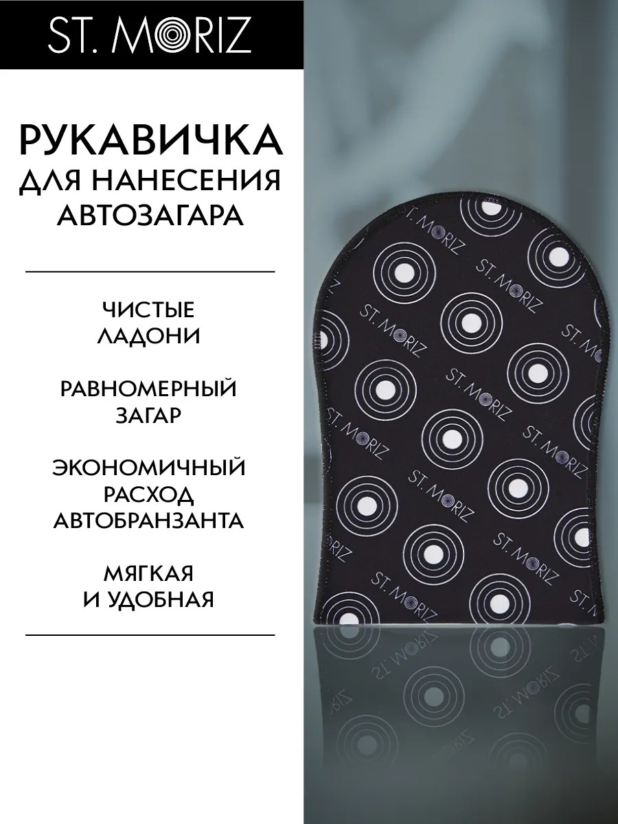 Варежка-рукавичка для нанесения автозагара st moriz — это стильный и практичный аксессуар, который поможет быстро и равномерно нанести автобронзант на тело и лицо.