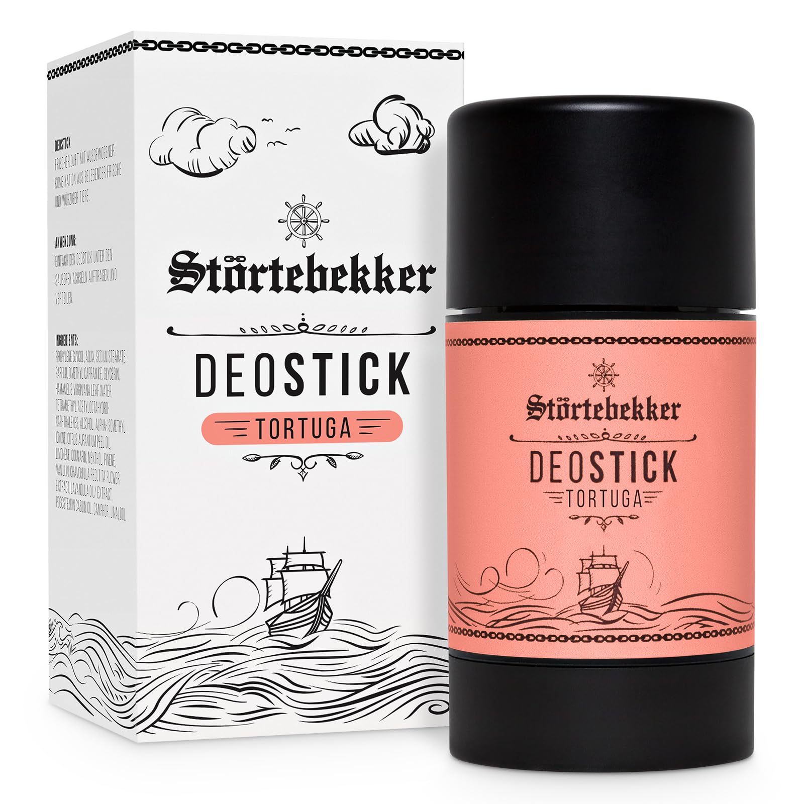 With Störtebekker Tortuga Stick Deodorant, you can enjoy long-lasting protection and natural freshness every day. Simply apply the deodorant to clean underarms and spread it gently to eliminate unpleasant odors and create a pleasant feeling of dryness and freshness. The stick deodorant is perfect for travel and fits easily into any bag. Our skin-friendly stick deodorant with nourishing ingredients such as Witch Hazel Water is suitable for all skin types, so you can feel comfortable. Our signature "Tortuga" fragrance (spicy and fresh) not only freshens your skin but also keeps you feeling pleasant throughout the day. For optimal comfort and care in your daily routine, we recommend combining it with our other Störtebekker products. INGREDIENTS Propylene glycol, water, sodium stearate, fragrance, dimethyl capramide, glycerin, witch hazel leaf water, tetramethyl acetyloctahydronaphthalenes, alcohol, alpha-isomethyl ionone, citrus aurantium peel oil, limonene, coumarin, menthol, pinanilline, chamamomilla recutita flower extract, lavender oil extract, pogostemon cablin oil, camphor, linaloolNo additives: Preservative-free, gluten-free, and lactose-free, for a clean and comfortable feeling all day long. Easy to carry: The compact stick deodorant fits perfectly in any bag and is the ideal travel companion. Vegan and made in Germany: The deodorant is completely vegan and guaranteed cruelty-free – safe and effective. Gentle on skin: Our stick deodorant is free of aluminum salts, parabens, and harsh chemicals – ideal for all skin types, even sensitive and easily irritated skin. Natural freshness: The men's stick deodorant offers long-lasting protection with a fresh, pleasant, and spicy scent.Störtebekker Tortuga Déodorant en stick rafraîchissant pour homme Parfum frais longue durée Idée cadeau pour homme Fabriqué en Allemagne 75 gDESCRIPTION DU PRODUIT DESCRIPTION DU PRODUIT Avec le déodorant en stick Störtebekker avec Tortuga, vous profitez d'une protection durable et d'une fraîcheur naturelle pour votre quotidien. Il suffit d'appliquer le déodorant sous les aisselles propres et de l'étaler doucement pour éliminer les odeurs désagréables et créer une agréable sensation de sécheresse et de fraîcheur. Le déodorant stick est parfait pour les déplacements et se glisse facilement dans n'importe quel sac. Notre déodorant en stick doux pour la peau avec des ingrédients nourrissants tels que l'hamamélis Virginiana Water est adapté à tous les types de peau, de sorte que vous pouvez vous sentir à l'aise. Notre parfum Signature « Tortuga » (épicé et frais) est non seulement frais, mais vous garde également agréable tout au long de la journée. Pour un confort et un soin optimaux dans votre routine quotidienne, nous vous recommandons de le combiner avec nos autres produits Störtebekker. INGRÉDIENTS Propylène glycol, eau, stéarate de sodium, parfum, diméthyl capramide, glycérine, eau de feuille d'hamamelis virginiane, tétraméthyle acétyloctahydronaphthalenes, alcool, alpha-isomethyl ionone, huile de peel citrus aurantium, limonene, coumarin, menthol, pinanilline, chamamomilla. Recutita Flower Extract, huile de lavandula extrait, huile de cablin de Pogostemon, camphore, linalolSans additifs : sans conservateur, sans gluten, sans lactose, pour une sensation de propreté et de confort tout au long de la journée. Facile à transporter : le déodorant en stick compact se glisse parfaitement dans n'importe quel sac et est le compagnon idéal pour les déplacements. Végétalien et fabriqué en Allemagne : le déodorant est entièrement végétalien et garanti sans cruauté envers les animaux - sûr et efficace. Formule douce pour la peau : notre déodorant en stick est sans sels d'aluminium, sans parabènes et sans produits chimiques agressifs - Idéal pour tous les types de peau, même les peaux sensibles et facilement irritables. Fraîcheur naturelle : le déodorant en stick pour homme offre une protection longue durée avec un parfum épicé, frais et agréable.