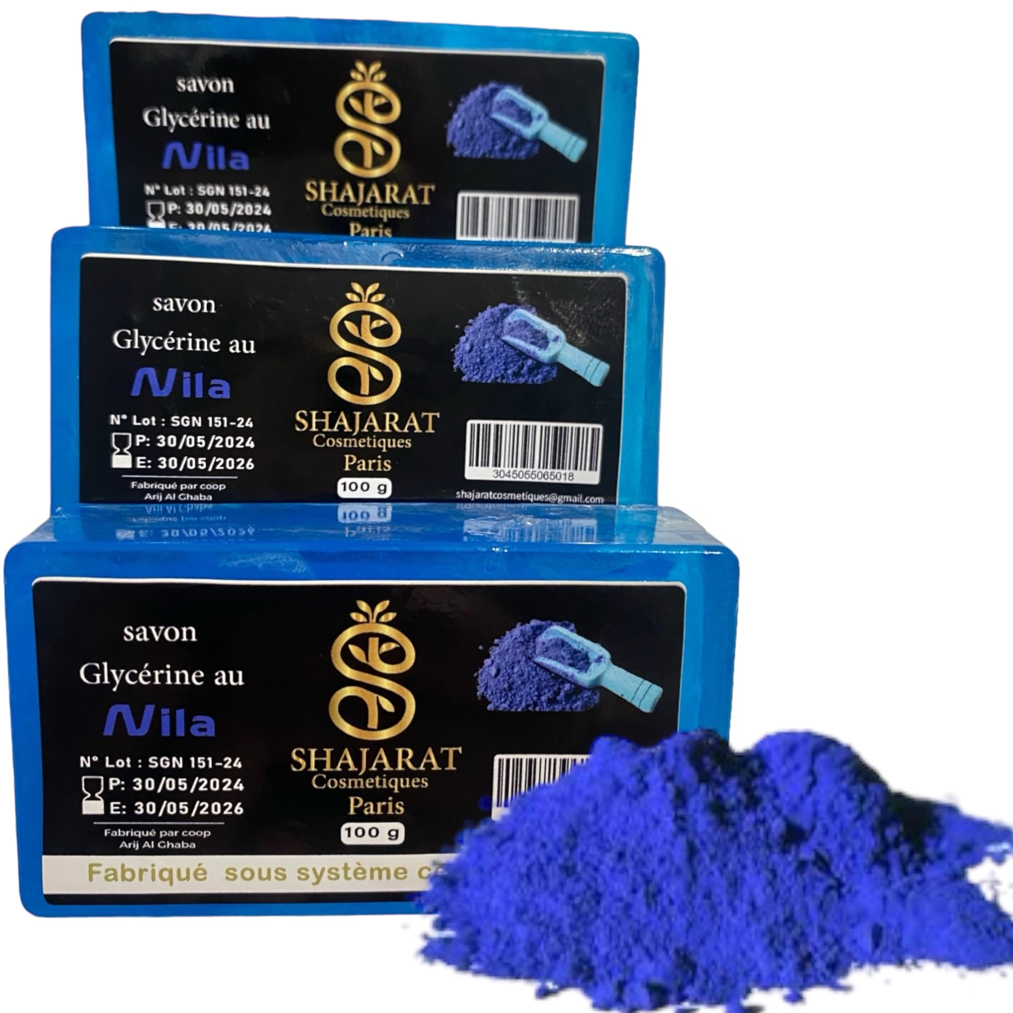 Lot de 3 Savons Nila Bleu-Shajarat- Éclaircissant- Anti tâches -Réduit L'Apparence Des Taches Et Des Imperfections- Peau Radieuse Et Eclatante- Anti-Acné-Visage et Corps-Naturel Maroc-100g
