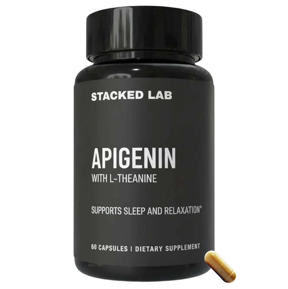 STACKED LAB Apigenin with L-Theanine for Better Sleep | Premium Sleep Support, Relaxation, & Sleep Quality Aid | Non-Drowsy, Melatonin Free | 60 Capsules