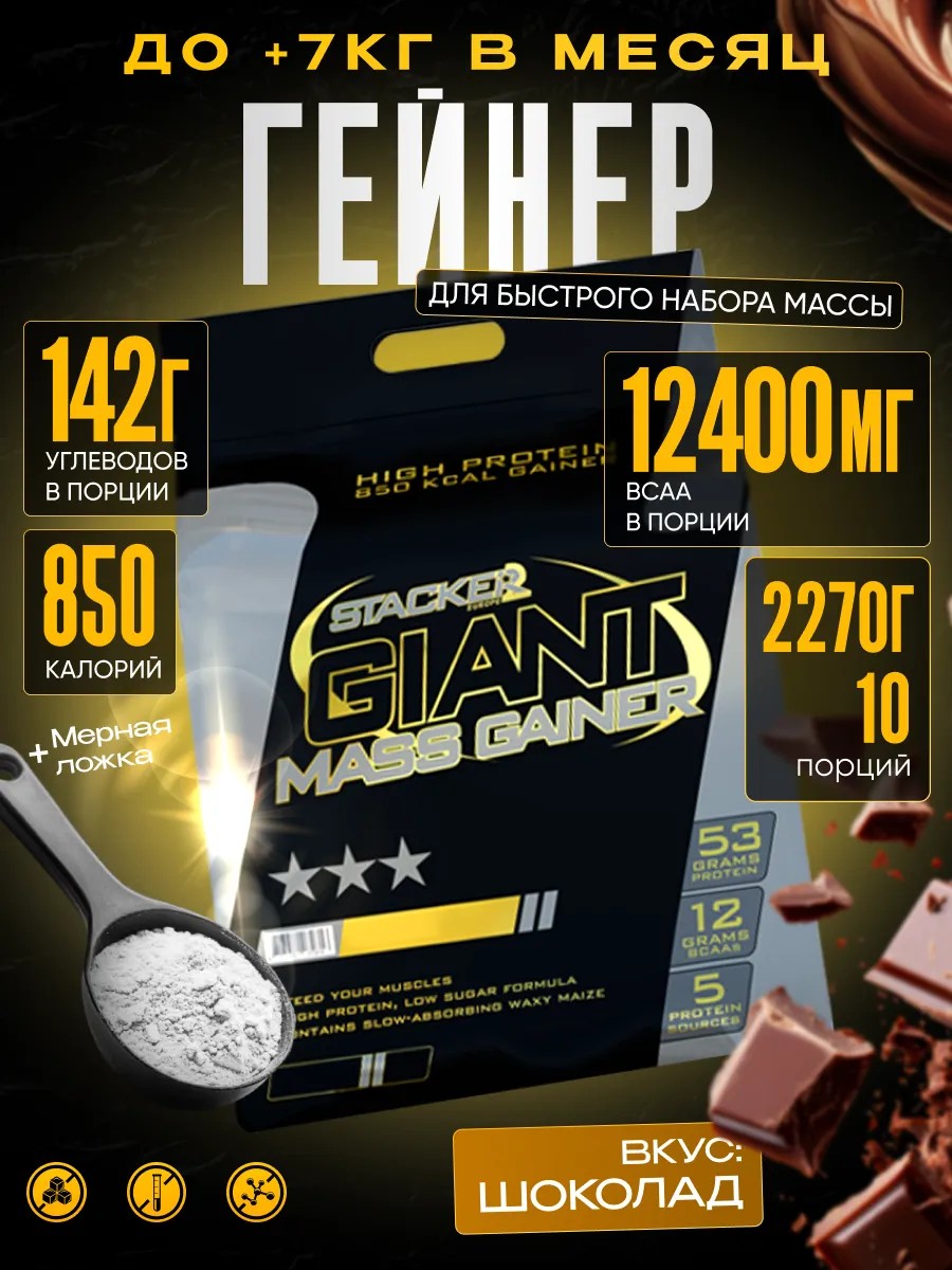Giant Mass Gainer (2270 гр.) – гейнер для тех, кто хочет быстрый и качественный набор массы! Высокое содержание белка, высокая калорийность, медленные углеводы и почти без сахара – все это новый гейнер Giant Mass Gainer европейского бренда Stacker2. Гейнер направлен на рост мышц без увеличения жировой массы – только качественный набор мышц. За основу гейнера Giant Mass Gainer было взято оптимальное соотношение высококачественного белка, медленных углеводов и жирных кислот, которые постоянно будут стимулировать мышечный рост. Каждая порция этого превосходного гейнера обеспечивает ваш организм 850 калориями, полученными из белка, углеводов с низким гликемическим индексом и среднецепочечных триглицеридов. Это один из самых продуктивных гейнеров на мировом рынке! Спортивное питание Джаинт Масс позволяет набрать до 7кг в месяц! Порция 227 гр (5 мерных ложек) рассчитана на профессиональных спортсменов с калорийностью дневного рациона 6000-7000 ккал. Рекомендуем употреблять спорт пит за один прием 2-3 мерных ложки (в перерасчете на белок - 23-26 г). Два раза в день. Тренировочный день за 40-50 минут до тренировки и через 10 минут после тренировки. Не тренировочный день между завтраком и обедом, между обедом и ужином.