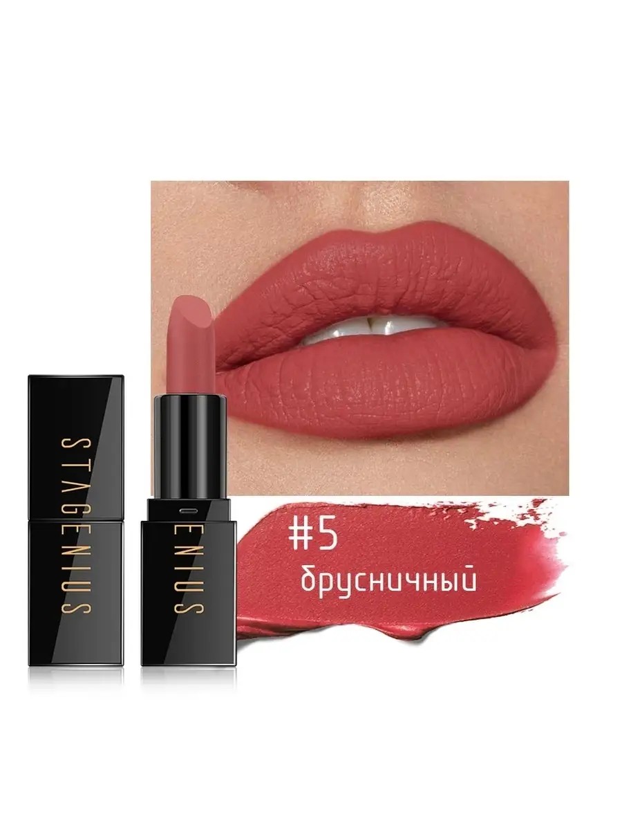 Невероятная увлажняющая матовая губная помада Stagenius - верный соратник в любой дамской сумочке! - Лаконичный и богатый дизайн сочетает в себе эстетичность и удобство. Небольшой объем губной помады делает ее компактной и удобной для носки в любом кармашке. - Матовая губная помада Stagenius будет радовать Вас своей стойкостью до 10 часов, увлажняя и скрывая несовершенства кожи губ. Устойчивая помада для губ избавит Вас от необходимости постоянно подкрашивать их. - Помада для губ защищает от UVA - и UVB-лучей. - Кремовая помада имеет едва уловимую приятную отдушку. - Несмотря на небольшой объем, расход помады минимален благодаря ее высокой пигментации: Вы можете регулировать плотность покрытия, тем самым получая новые образы, не покупая новый продукт!