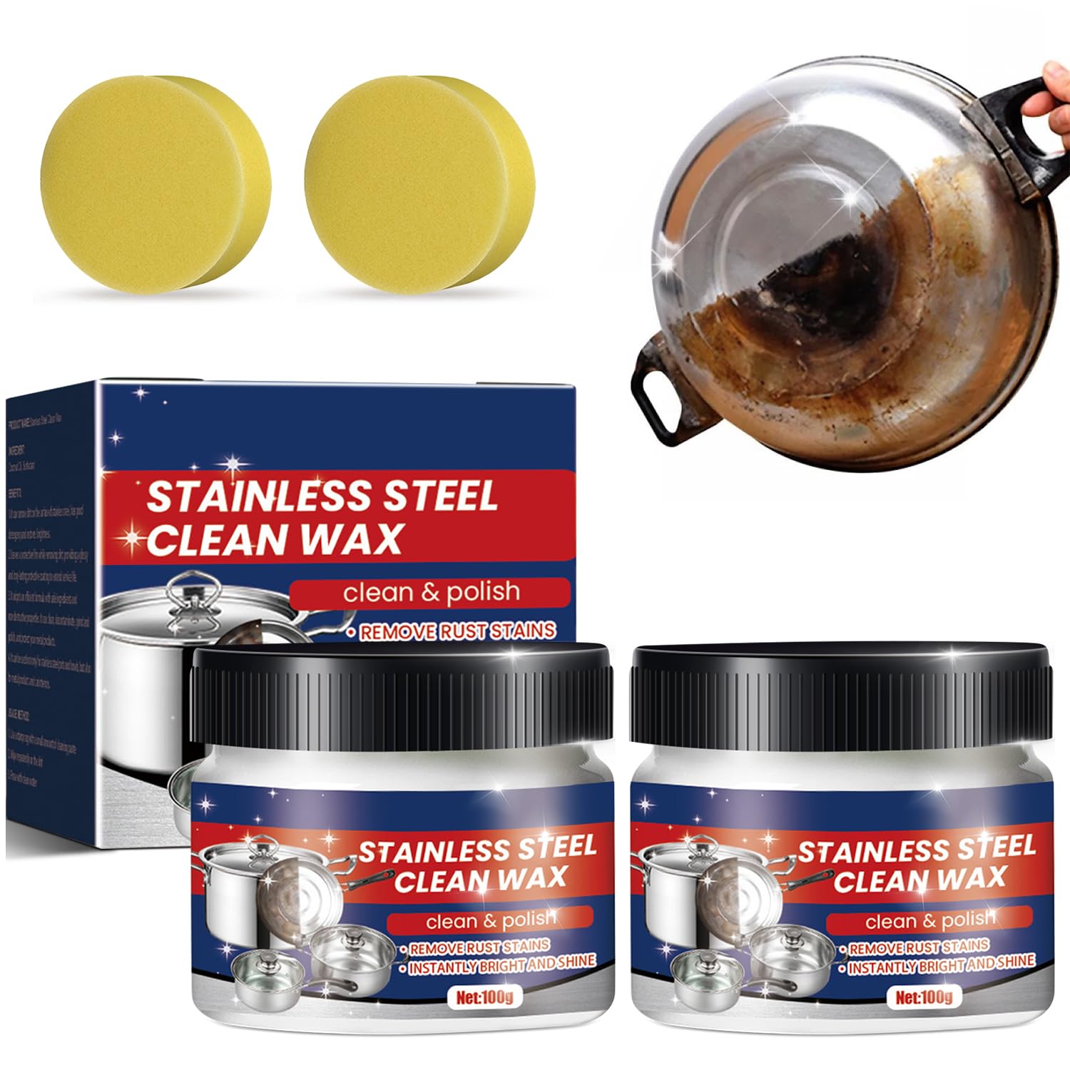 Stainless Steel Clean Wax,Magical Nano-Technology Stainless Steel Cleaning Paste,Stainless Steel Cookware Cleaner,Stainless Steel Cleaner for Pots and Pans, Surface Safe, No Residue(2PCS) Features: 1. Remove stains and rust stains on the pot. 2. Powerful cookware rust removal cleaning paste. 3. Effectively remove stubborn stains and rust. How To Use: 1. Use a sponge with a small amount of cleaning paste. 2. Wipe repeatedly on the dirt. 3. Rinse with clean water. Specifications: Name: Stainless Steel Clean Wax Net content: 100g Size: 2.56*2.56*2.95 in/6.5*6.5*7.5cm Storage Method: Store in a Cool and Dry Place Package Included: 2Pcs * Stainless Steel Clean Wax 2Pcs * Cleaning Sponge Notice: 1. Due to manual measurements, please allow slight measurement deviations. 2. Due to the different display and lighting effects, the actual color of the item may be slightly different from the color displayed on the picture. 3. If you have any questions, please let us know and we will solve the problem as soon as possible.[Easy to Use]Just Apply The Stainless Steel Pan Cleaner On The sponge and Wipe Gently. for Stubborn Stains, Spray a Little Water on The Surface Before Using The Cleaner. After Wiping, Rinse With a Clean Sponge or Water. [Wide Application]Clean Kitchenware (Oven, Pans, Cookware and Stoves), Bathtubs, Door and Window Frames, Car Wheels, Ceramic Bathroom Supplies, Car Glass Fog, Etc. [Fast and effective]Stainless Steel Wipes directly to the metal that needs to be cleaned, then polish it with a sponge, and you’ll see a piece of brand new stainless steel in no time. [Magical Nano Cleaning Paste]Stainless Steel Cleaning and Polishing Anti-Rust Formula. Stainless Steel Appliance Cleaner Can Moisten The Surface of The Object, Compensate for Moisture and Form an Antioxidant Film on The Surface to Reduce Dust Coverage. A nice job is created in removing rust from chrome surfaces, polishing aluminum, etc., without leaving scratches or grinding marks and extend of using life. [Remove Stains]Our Powerful Cookware Cleaning Paste Is Suitable for All Kinds of Stainless Steel and Kitchen Metal Pots, Dirt On Ovens, Limescale on Tiles and Aluminum Windows.Provides a glossy, long-lasting protective coating and prevent further discoloration and help maintain shine longer.
