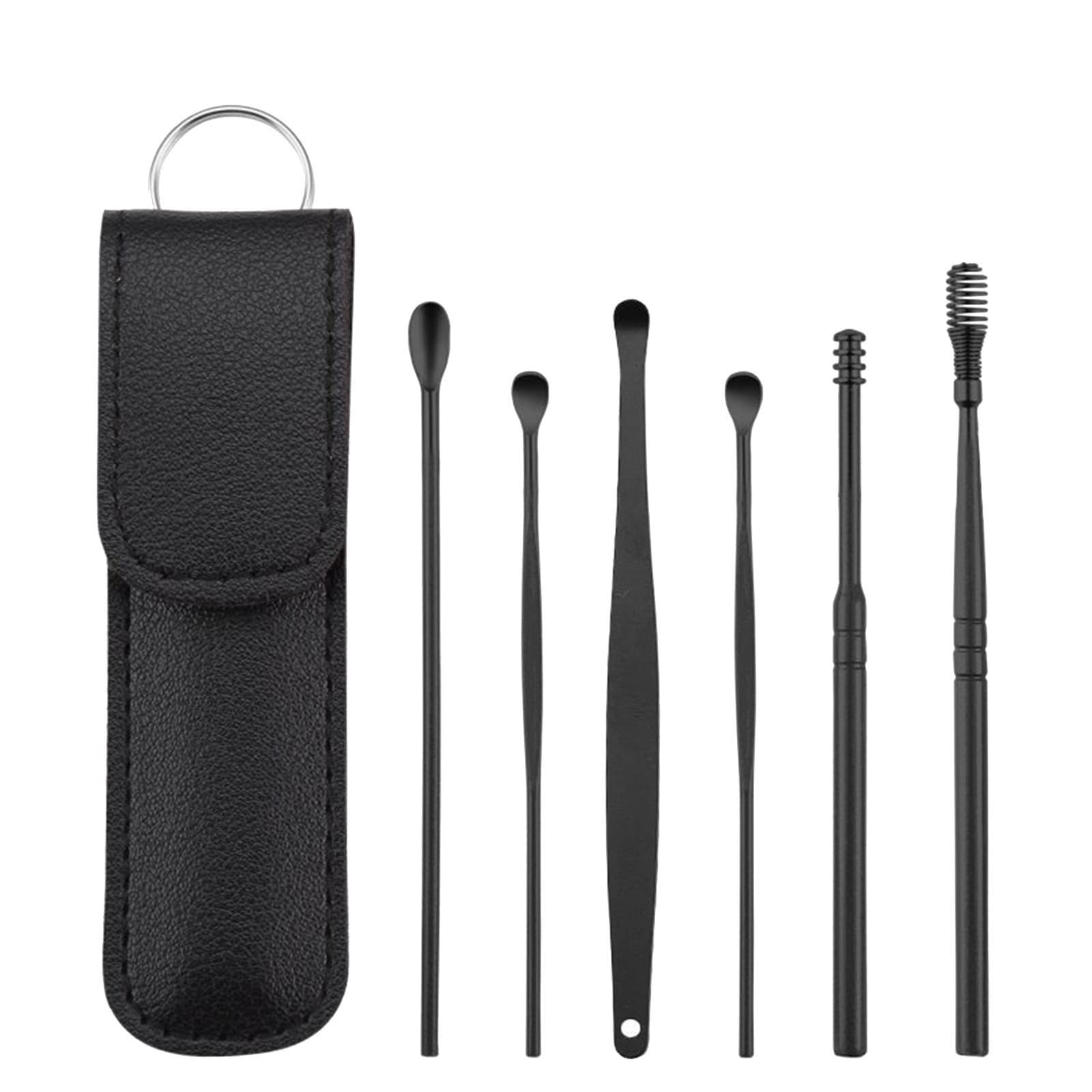 Stainless Steel Ear Picking Spoon 6 Piece Set For Children And Adults Ear Picking Ear Picking Set Tool Cleaner Ear Wax Candle (Black One Size)