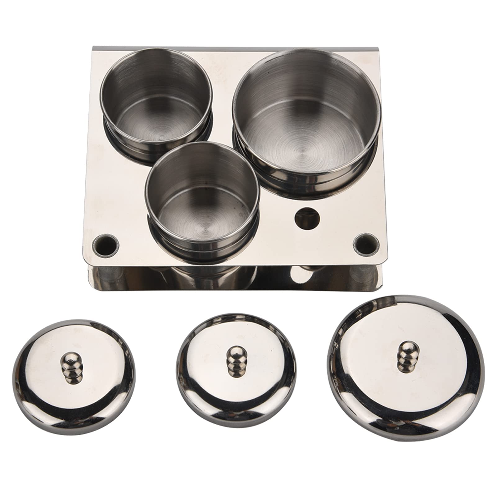 [Compact and portable design] - The compact size of approximately 13.50 * 11.00 * 6.50cm makes it easy to carry and store. Perfect for both professional use and home DIY nail art projects. [Enhance your work image] - This tool is a must-have for every nail artist. It not only helps you stay organized but also enhances the overall image of your work. [ stainless steel construction] - Made of rust-resistant stainless steel, these 3 mini powder and liquid storage cans are durable and long-lasting. [Professional and clean cups with lids] - Each can comes with a lid to keep your powders and liquids secure. The cups are designed to provide a clean and organized storage solution. [Built-in holes for brushes] - Convenient holes on the lid allow you to hold your brushes, keeping them easily accessible for your nail art work. Spec: Features: 100% brand new and . 3 Professional and clean cups with lids. Built-in holes for holding brushes. Rust-resistant stainless steel construction. Great tool for enhancing image of your work. Specifications: Item Type: Nail Art Mini Powder & Liquid Set Material: Stainless Steel Quantity: 3pcs Size: Approx.13.50 * 11.00 * 6.50cm Weight: Approx.157g Package List: 3 x Nail Art Mini Powder & Liquid Cans 1 x Base