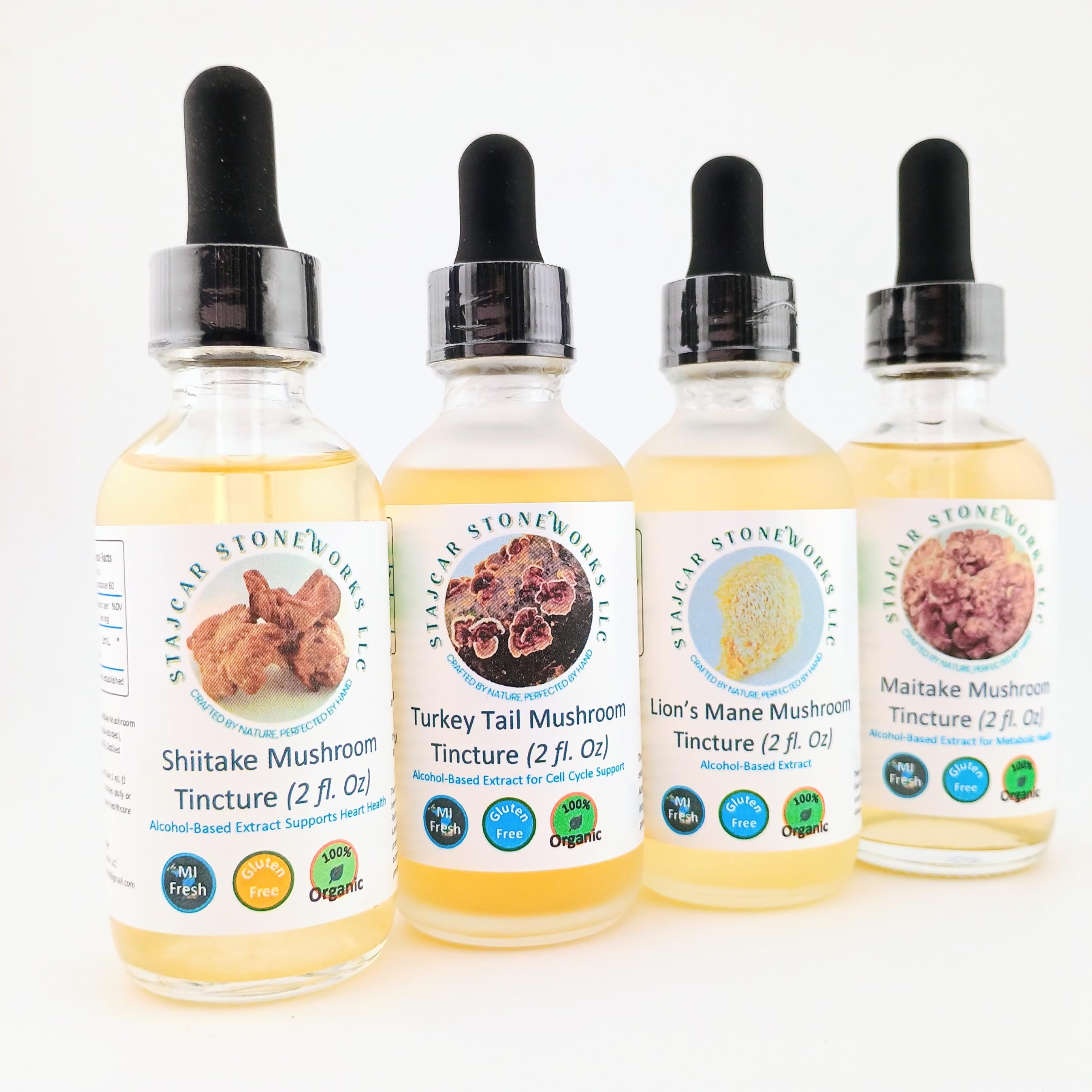 Stajcar Stoneworks Immunity Bundle, 4 Pack Deal Shiitake, Turkey Tail, Lion s Mane, Maitake Tinctures Heart, Immune, Cognitive, Nervous System, Holistic Wellness Support 4x2 Oz