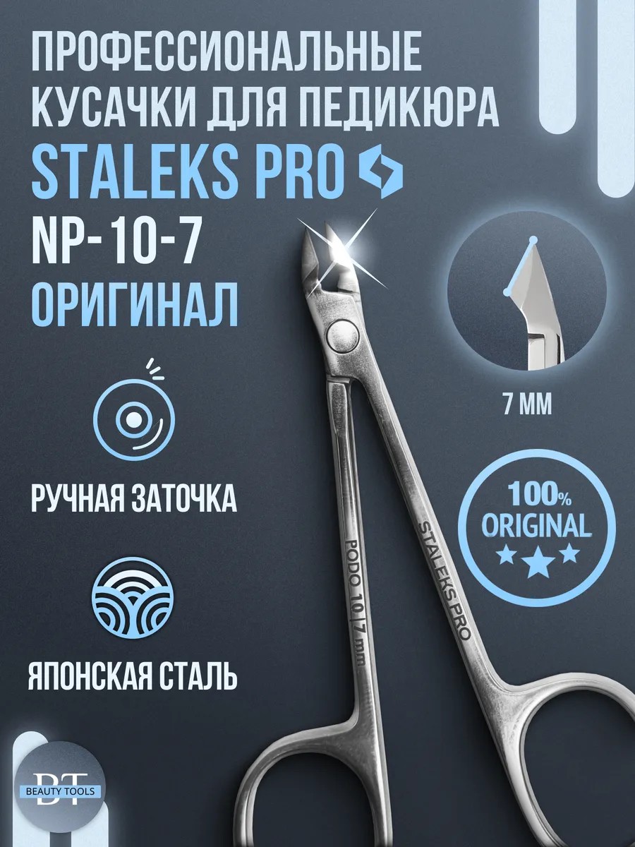 Профессиональные кусачки для ногтей Staleks Pro глазки PODO NP-10-7мм. Кусачки для педикюра идеально подходят для удаления мозолей и натоптышей. Кусачки педикюрные NP 10 7 для вросших ногтей, огрубевшей кожи а так же для обработки кутикулы. Заточка выполнена вручную лучшими мастерами завода Сталекс. Кусачки для ногтей Staleks Pro выдерживают все виды дезинфекции и обработки. Специальный сплав, из которого изготовлены наши щипчики глазки не подвергается коррозии и ржавчине, эти свойства делают безграничный срок службы приспособления. Гипоаллергенная Японская сталь отлично подрезает кутикулы и не оставляет заусенцев, что является большим плюсом инструментов Сталекс. Металл не вызывает аллергии на коже рук и ног. Кусачки глазки сталекс устойчивы ко всем видам стерилизации и дезинфекции. Полировка поверхностей и правильно настроенная заклепка продлевает долговечность инструмента и позволит полотнам ходить без скрежета и люфта. Кусачки для вросшего ногтя Staleks это воплощение надежности, качества и комфорта в работе. Вы не только получаете профессиональный инструмент для ногтей но и инвестируете в свою карьеру и репутацию. Доверьтесь бренду Staleks Pro и убедитесь, что вы заслуживаете только самое лучшее! Желаем Вам приятных покупок!