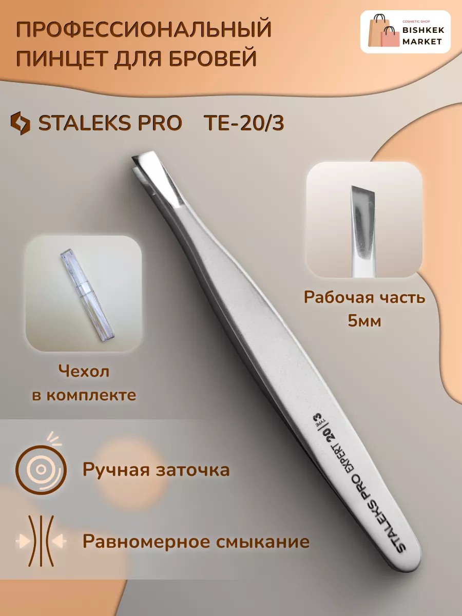 Stalks Eyebrow and Eyelash Tweezers. Designed for beauty professionals, these tools feature pointed and beveled edges for comfortable and enjoyable work. They are perfectly sharpened, and the edges fit snugly. Each tweezers undergoes quality control testing at the factory. Their wide surface ensures a comfortable grip and prevents slippage. These tweezers are made of high-quality AISI-420 medical grade steel; the metal can be sterilized using any method and disinfectant. These tweezers are also suitable for home use. To choose the right tool, please contact us with questions, and our manager will help you find the perfect product. Customer feedback is very important to us. We wish you a pleasant shopping experience! BEAUTY TOOLS is the official distributor of Staleks.