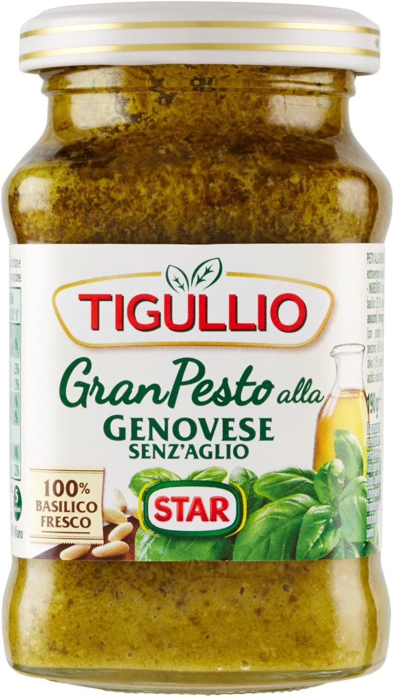 Gran Pesto Tigullio alla Genovese without garlic is prepared with 100 freshly processed basil and selected ingredients, which are skillfully combined to breathe life into a rustic texture: it is a Mediterranean triumph that will make you triumph. It does not contain garlic. Ingredients sunflower oil (34 ), basil (29.2 ), potatoes, glucose syrup, CASHEW, Grana Padano cheese (4.5 ) (with EGG proteins), pecorino cheese (4.5 ), salt, extra virgin olive oil (1.5 ), pine nuts (1 ), natural a). Acids Regulator: Lactic Acid. Note: slightly salt the cooking water and dilute each portion with a spoon INGREDIENTS Ingredients: sunflower oil (34 ), basil (29.2 ), potatoes, glucose syrup, CASHEW, Grana Padano cheese (4.5 ) (with egg proteins), pecorino cheese (4.5 )), salt, indigenous extra olive oil (1.5 ), pine nuts (1 ), natural flavors. and, acid regulation. ulator: lactic acid.Star Tigullio GranPesto Alla Genovese senz'aglio met basilicum zonder knoflook 190 g Gran Pesto Tigullio alla Genovese zonder knoflook wordt bereid met 100 vers verwerkte basilicum en geselecteerde ingrediënten, die vakkundig worden gecombineerd om een rustieke textuur leven in te blazen: het is een mediterrane triomf die je laat zegevieren. Het bevat geen knoflook. Ingrediënten zonnebloemolie (34 ), basilicum (29,2 ), aardappelen, glucosesiroop, CASHEW, Grana Padano-kaas (4,5 ) (met EI-eiwitten), pecorinokaas (4,5 ), zout, eerste persing olijfolie extra (1,5 ), pijnboompitten (1 ), natuurlijke a). zuren Regulator: melkzuur. Opmerking: het kookwater iets zout en verdunnen elke portie met een lepel INGREDIËNTEN Ingrediënten zonnebloemolie (34 ), basilicum (29,2 ), aardappelen, glucosesiroop, CASHEW, Grana Padano-kaas (4,5 ) (met ei-eiwitten), pecorino-kaas (4,5 )), zout, inheemse olijfolie extra (1,5 ), pijnboompitten (1 ), natuurlijke aroma's. en, zuurteregulatie. ulator: melkzuur.