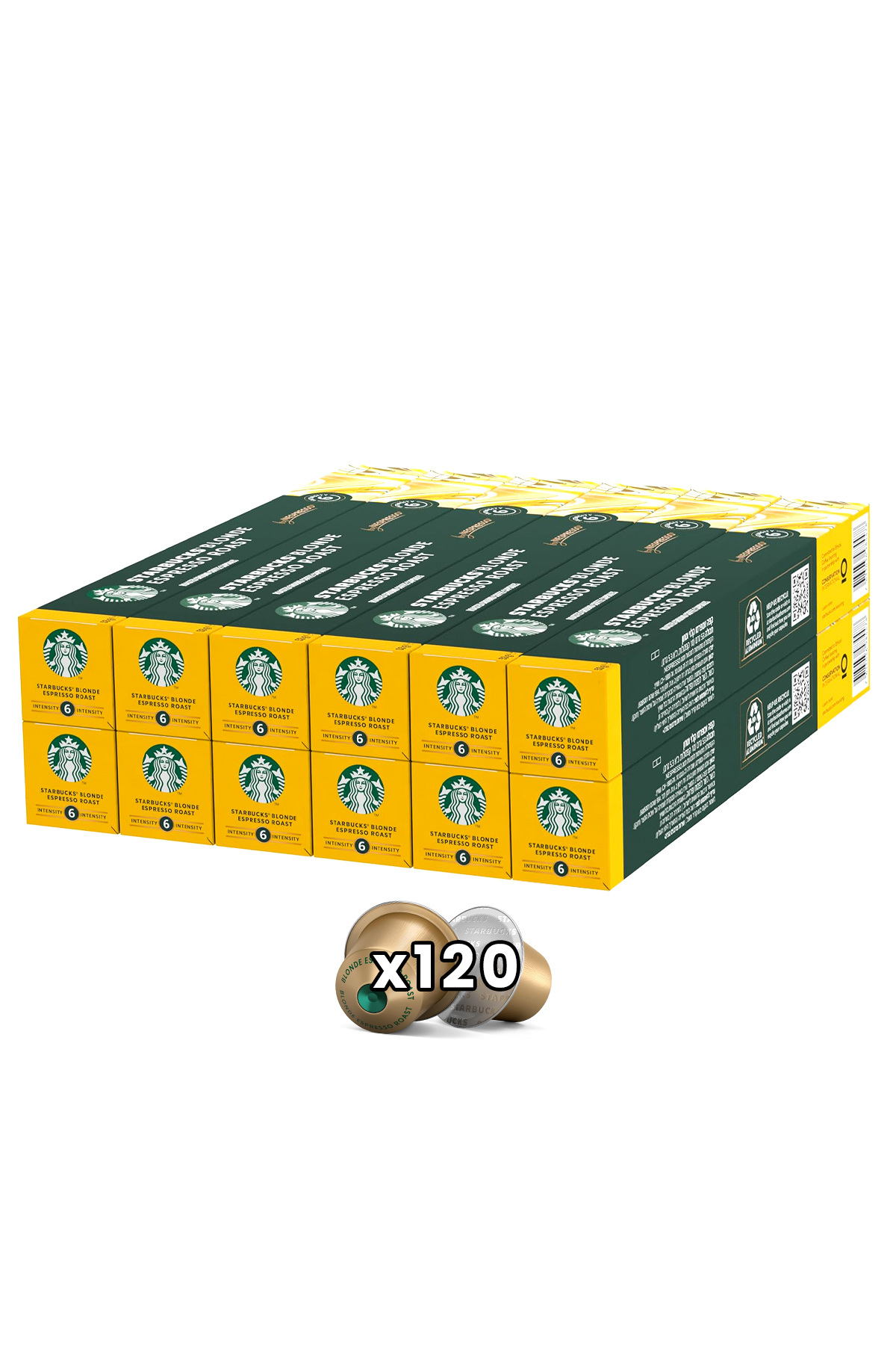 Starbucks Blonde Espresso Capsule Coffee 10-Pack x12 consists of 120 capsules in total. Capsules are Nespresso Compatible.