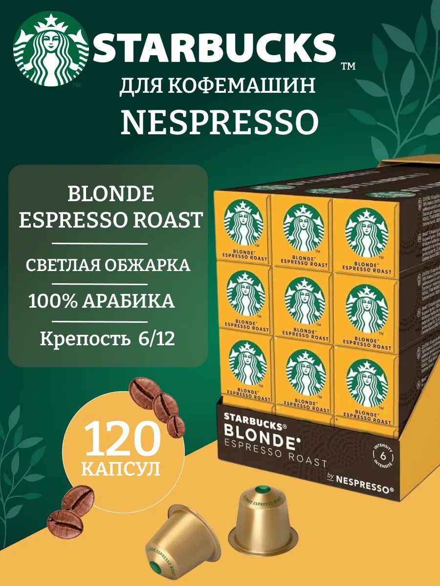 STARBUCKS Blonde Espresso Roast, кофе жареный молотый светлой обжарки, в алюминиевых капсулах для системы Nespresso, 100% Арабика, 10 шт. Ноты: Эспрессо самой слабой обжарки с нежным и мягким вкусом. Интенсивность: 6 из 12 Размер чашки: Ристретто (25 мл) или Эспрессо (40 мл). Обжарка: Blonde - светлая, обладает легким и ярким вкусом. Каждый вид кофе требует различной степени обжарки для достижения оптимального соотношения аромата, кислинки, плотности кофе и вкуса. Мы разделяем наш кофе на три вида обжарки Blonde, Medium и Dark, чтобы вы легко могли найти свой любимый кофе. История бленда: Почти 50 лет мы совершенствовали способы отбора, блендинга и обжарки кофейных зерен, чтобы создать этот насыщенный эспрессо с удивительно мягким вкусом. Этот бленд кофейных зерен из Латинской Америки обжаривался особым способом для придания его вкусу ярких, сладких ноток. Классический эспрессо с мягким, сбалансированным вкусом хорошо сочетается с молоком, придающим ему дополнительную нежность.