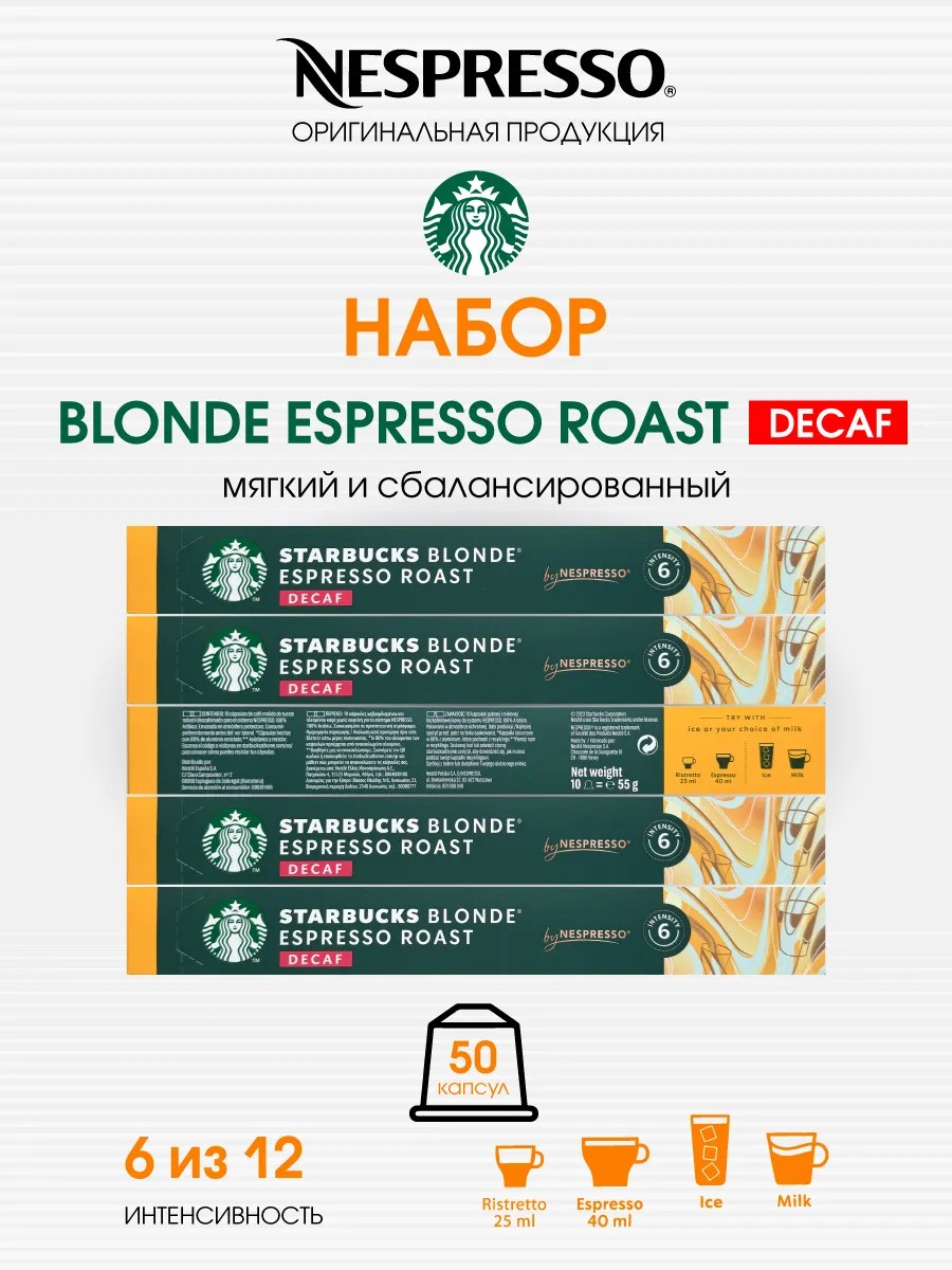 Starbucks Набор 50 капсул Старбакс бленд Blonde Espresso Roast Decaf