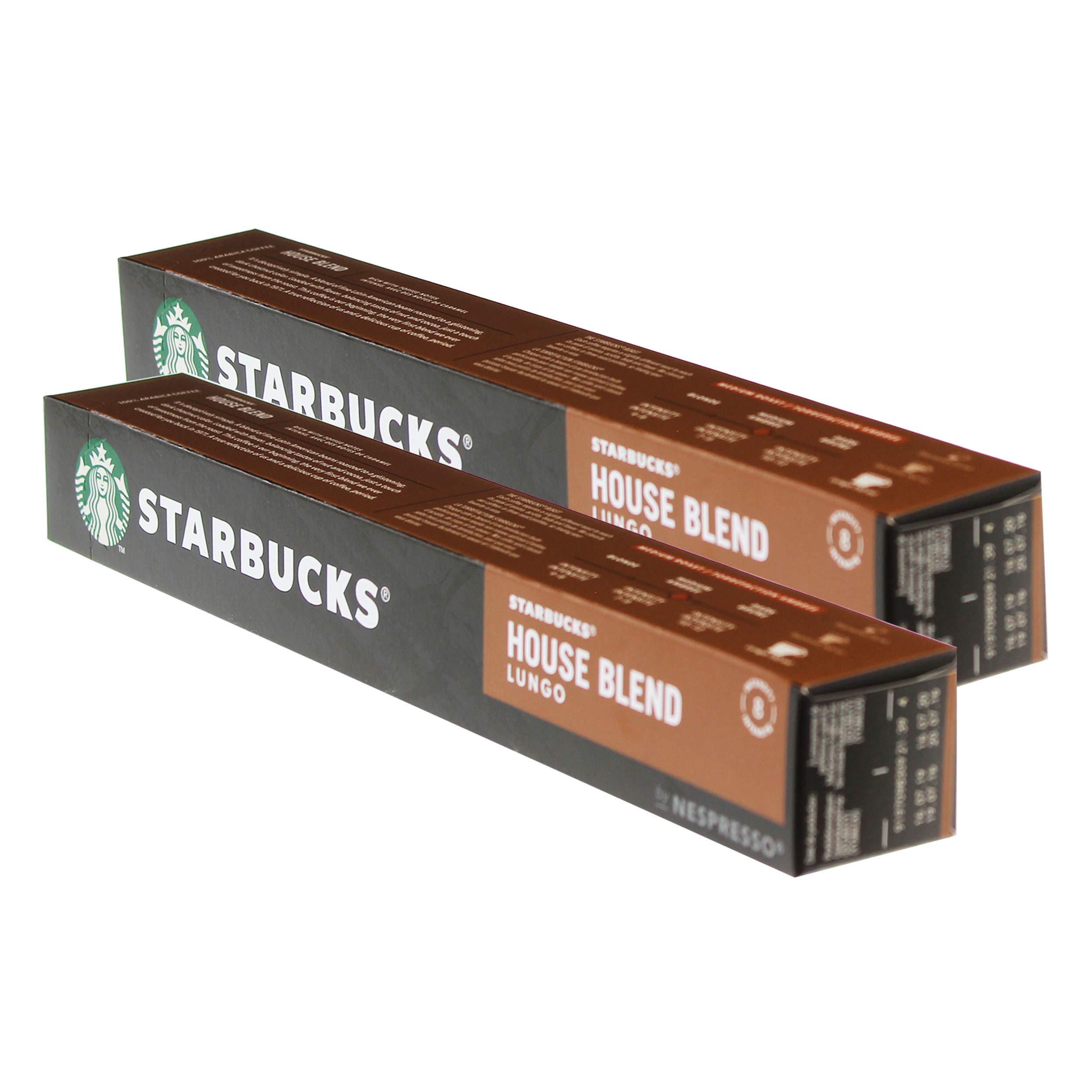 Starbucks House Blend Lungo Coffee - Roasted Coffee - Nespresso Compatible - 10 Capsules: It sounds almost too good to be true. A blend of fine coffee beans from Latin America, roasted to a rich, deep brown, with a full flavor and balanced notes of mist and cocoa, and a touch of sweet cream. This is the very first blend created by Starbucks in 1971 for its guests. For the Nespresso capsule system, 100 Arabica, medium roast 8 12 - Net weight: 57 g - Manufactured for: Nestlé Deutschland AG, Lyoner Strasse 23, 60523 Frankfurt - Germany - Ingredients: Starbucks House Blend Lungo Coffee - Medium roast coffee Nespresso compatible coffee capsules, 10 capsules: ground roast coffee, delivery contents: 2 x 1 pack of Starbucks House Blend Lungo coffee, medium roast, Nespresso compatible coffee, 10 coffee capsules, 10 servings.Starbucks House Blend Lungo Lot de 20 capsules de café à roast Taille moyenne Compatible NespressoDESCRIPTION DU PRODUIT Starbucks House Blend Lungo Café - Café torréfié - Compatible Nespresso - 10 capsules : il sonne presque trop facilement. Un mélange de grains de café fins en armerique latine, grillés dans un châtain foncé et lumineux, avec un goût riche et des notes équilibrées de brume et de cacao, et une touche de crème sucrée. C'est le tout premier mélange créé Starbucks en 1971 pour ses invités. Pour le système de capsules Nespresso, 100 arabica, moyennement torréfié 8 12 - Poids net : 57 g - Fabriqué pour : Nestlà Deutschland AG, Lyoner Strasse 23, 60523 Frankfurt - Allemagne - Ingrédients : Starbucks House Blend Lungo Café - Café moyen Café grillé Capsules de café compatibles Nespresso, 10 capsules : café torréfié moulu, contenu de la livraison : 2 x 1 paquet de café Starbucks House Blend Lungo, grille moyenne, café torréfié compatible Nespresso, 10 capsules de café, 10 portions.