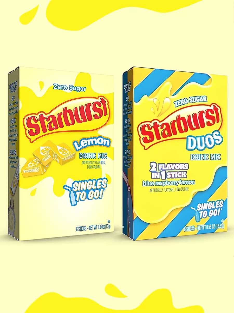 Пакетики для напитков Starburst Singles To Go без сахара - это низкокалорийные добавки для воды, которые не содержат сахара, поэтому Вы можете с удовольствием поделиться ими со всей семьей.