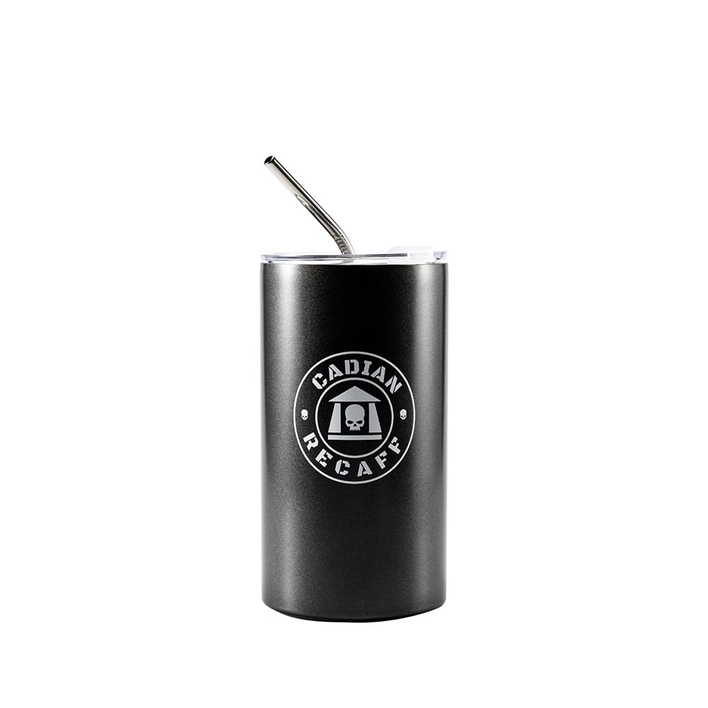 Recaff is a popular hot beverage made from crushed and brewed leaves, drunk on Imperial worlds throughout the galaxy. The composition can vary from planet to planet, but most blends contain some form of stimulant such as caffeine or detoxified pharmoxine compounds.Weight: 250 g. Dimensions: 16.5 x 8.84 cm. Material: 304 stainless steel.Recaff est une boisson chaude populaire fabriquée à partir de feuilles écrasées et brassées et qui se boit dans les mondes impériaux à travers la galaxie. La composition peut varier d'une planète à l'autre, mais la plupart des mélanges contiennent une certaine forme de stimulant tel que la caféine ou des composés pharamoxines détoxifiés.Poids : 250 g. Dimensions : 16,5 x 8,84 cm. Matériau : acier inoxydable 304.Starforged Warhammer Bouteille d'eau de sport 40 K Cadian Recaff Space Marine Astra Militarum
