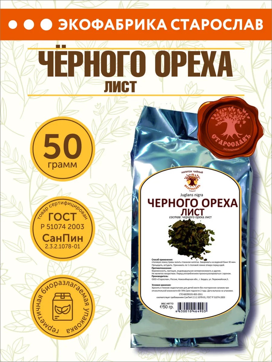 СТАРОСЛАВ Черный орех (лист, 50 гр.)