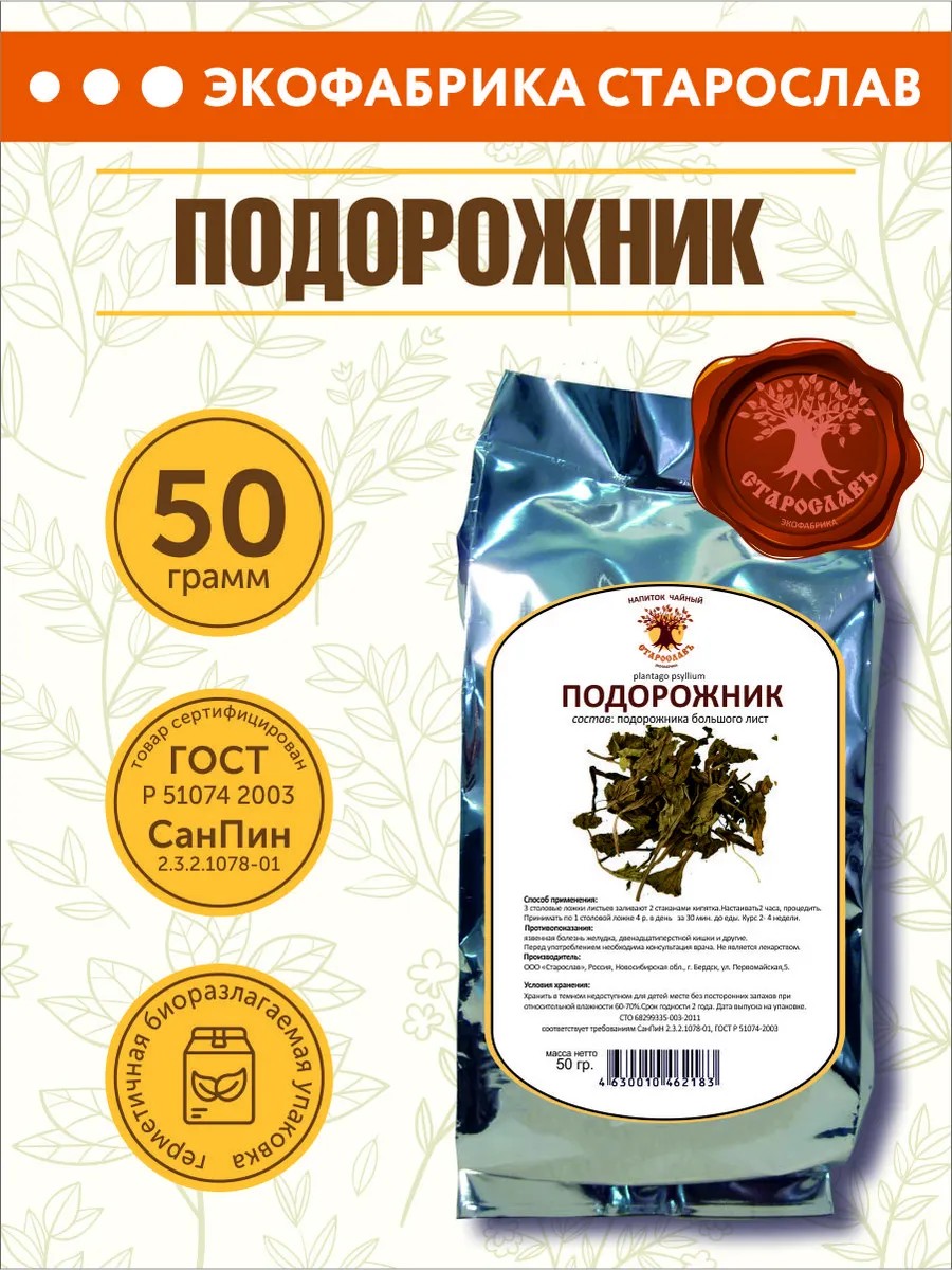 СТАРОСЛАВ Подорожник (лист, 50гр.)