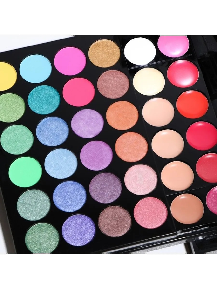 This stylish and convenient beauty case contains all the essentials for creating vibrant, natural looks. The set includes 48 eyeshadow shades, allowing you to experiment with various makeup styles and techniques. To complete your look, there are 24 lip glosses that add volume and shine, as well as 3 blushes and 3 concealers for contouring and highlighting your features. The set includes a large mirror and 8 applicators, making it extremely convenient and practical to use. Its compact size and lightweight design make it easy to take to work, on a walk, or on the go. It's an ideal choice for professional makeup artists and those just beginning to master the art of makeup. Beautifully packaged, it makes a great gift for any occasion, whether it's a birthday, Women's Day, or New Year's.