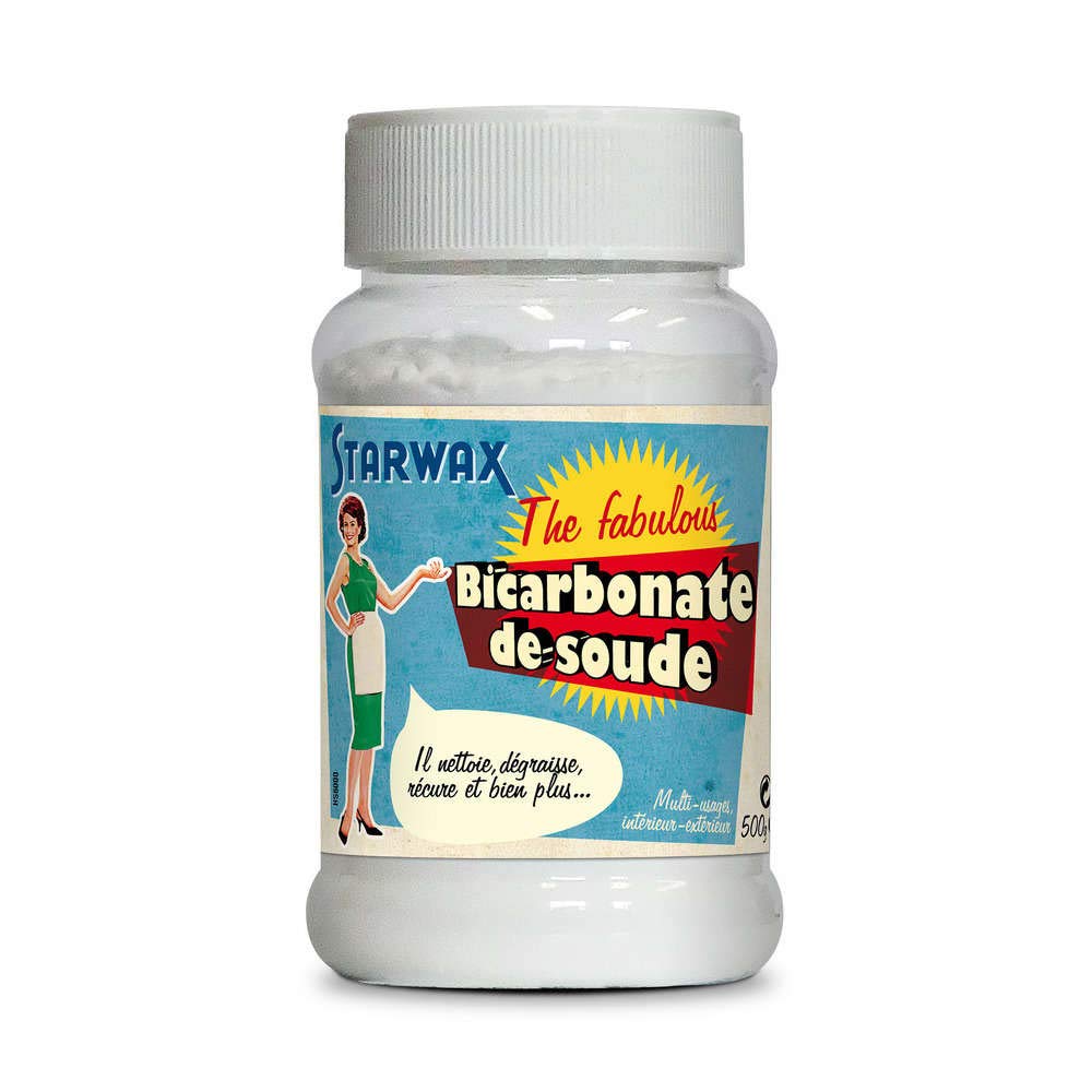 Since 1954, the Starwax brand has put its know-how and experience at your service: today find a whole range of multi-use products to maintain your interior as in the past, products that our grandmothers used on a daily basis and which have proven their effectiveness. Recognized for its many virtues, baking soda is a powder of mineral origin. If you were looking for a smart product to help you maintain your home, baking soda is for you: It dissolves fats, It absorbs bad odors, It makes the water softer. Precautions: Do not use to clean aluminum, Do not use for wool and silk, If mixed with white vinegar, respect the doses indicated. DIRECTIONS FOR USE Keep out of reach of children. Do not use to whiten teeth. Do not apply to aluminum. Do not use for silk and wool. DISCLAIMER Non-contractual photography. The above indications are given for information purposes. They are not necessarily exhaustive and cannot replace the information appearing on the product packaging which alone is authentic, and to which you are invited to refer, particularly in the event of food intolerance. It makes water softer. It absorbs bad odors. It dissolves grease. Known for its many virtues, baking soda is a mineral-based powder. Depuis 1954, la marque Starwax met son savoir-faire et son expérience à votre service : retrouvez aujourd'hui toute une gamme de produits multi-usages pour entretenir votre intérieur comme autrefois, des produits qu'utilisaient nos grand-mères au quotidien et qui ont prouvé toute leur efficacité. Reconnu pour ses nombreuse vertus, le bicarbonate de soude est une poudre d'origine minérale. Si vous cherchiez un produit malin pour vous aider à entretenir votre maison, le bicarbonate de soude est fait pour vous : Il dissout les graisses, Il absorbe les mauvaise odeur, Il rend l'eau plus douce. Précautions : Ne pas utiliser pour nettoyer l'aluminium, Ne pas employer pour la laine et la soie, En cas de mélange avec le vinaigre blanc, respecter les doses indiquées. MODE D'EMPLOI Tenir hors de la portée des enfants. Ne pas utiliser pour blanchir les dents. Ne pas appliquer sur de l'aluminium. Ne pas utiliser pour la soie et la laine. CLAUSE DE NON-GARANTIE Photographie non contractuelle. Les indications ci-dessus sont données à titre d'information. Elles ne sont pas forcément exhaustives et ne sauraient se substituer aux informations figurant sur l'emballage du produit qui font seules foi, et auxquelles vous êtes invités à vous reporter, notamment en cas d'intolérance alimentaire. Il rend l'eau plus douce. Il absorbe les mauvaise odeur. Il dissout les graisses. Reconnu pour ses nombreuse vertus, le bicarbonate de soude est une poudre d'origine minérale.