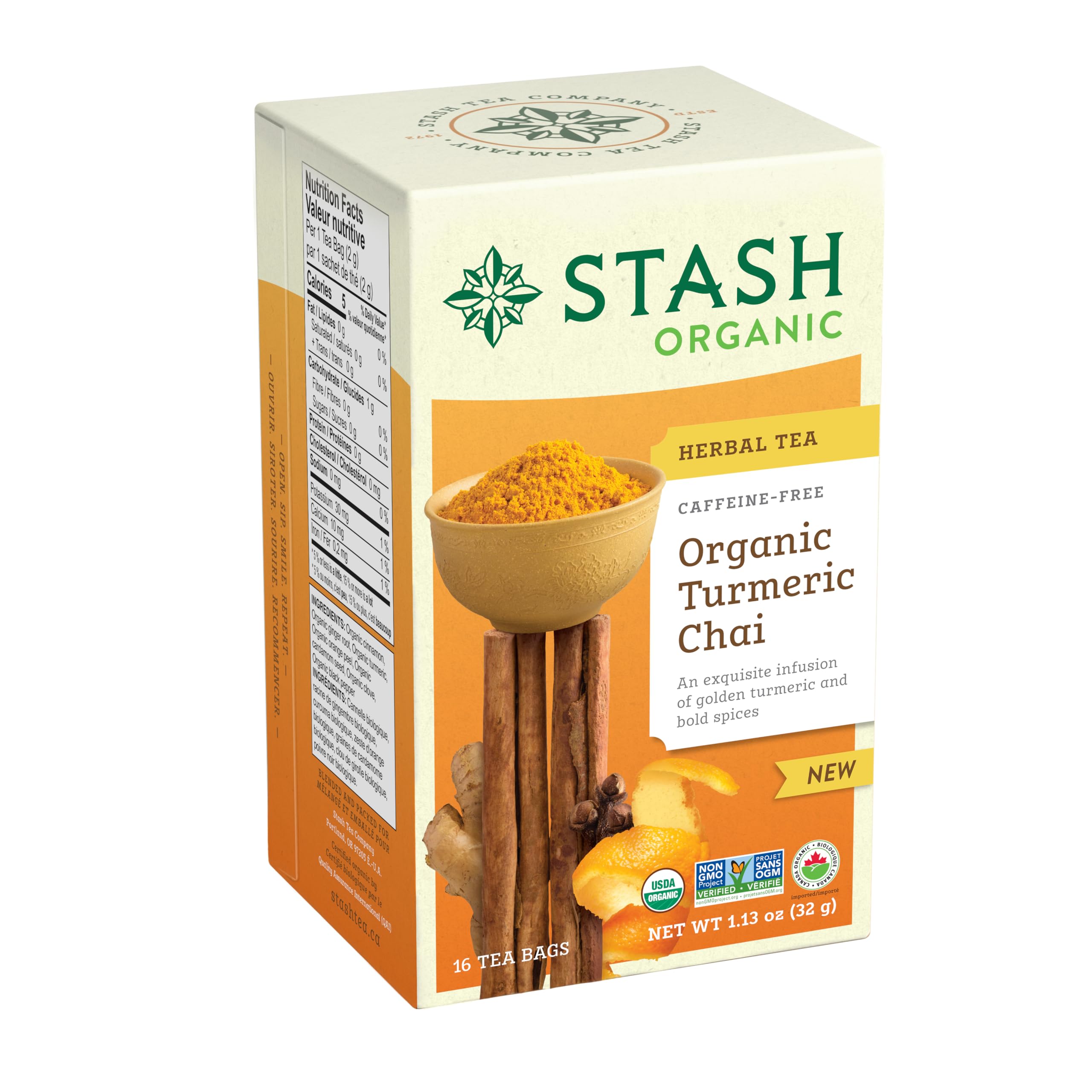 Happy Sipping! Back in 1972, in the basement of a classic Victorian home, two tea afficianados in Portland, Oregon set out to craft uplifting teas. 50 years later, we're still convinced of the transformative power of tea to nurture both the mind and the body. That's why we combine premium quality natural teas, herbs, and spices to create vitality-boosting blends with tantalizing flavors. As it turns out, happiness is just a steep away.Find Your Flavor: With over 150 teas to choose from including loose leaf, iced tea, green tea, decaffeinated black tea, chai, herbal teas and more, you're sure to find your next favorite with Stash. Incomparable Quality: From herbal, black, and green to white, or oolong, our premium tea bags are packaged in stay fresh foil wrappers to deliver a high quality cup, from morning chai to bedtime chamomile. Steeping Instructions: 3-5 minutes at 190-210 degrees Fahrenheit. Steeping to a beautiful golden color with a lingering aroma and natural spicy sweetness, this enchanting tea is blended to a balanced perfection. A smooth, caffeine-free blend of organic chai spices and turmeric that's a true delight for the senses.
