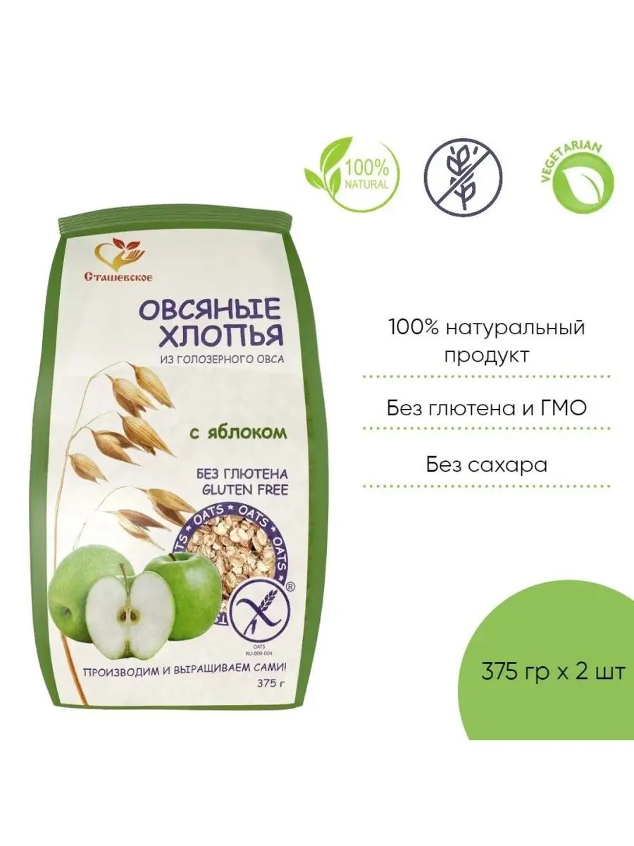 Хлопья овсяные без глютена, с яблоком 375 гр,2 шт