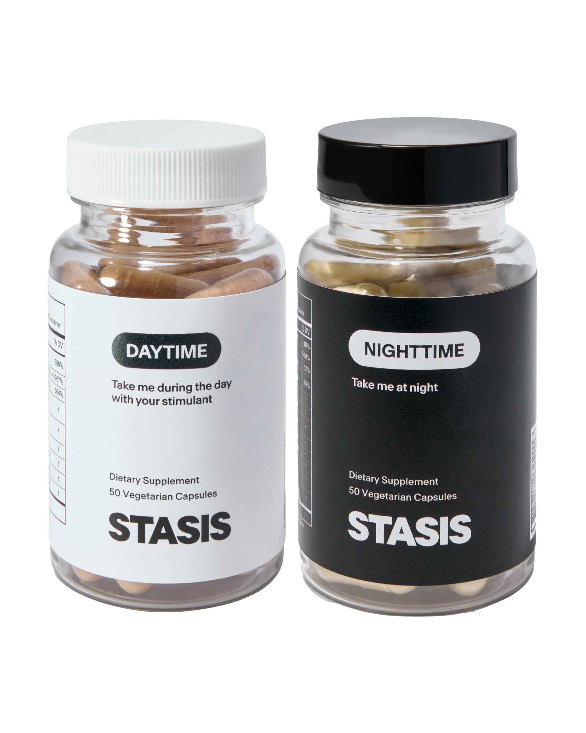 Stasis Day & Night Set - Energy and Focus Supplement - Calm and Sleep Capsules to Pair with Stimulant - Promote Natural Energy Without Jitters - Magnesium for Sleep - 25 Servings