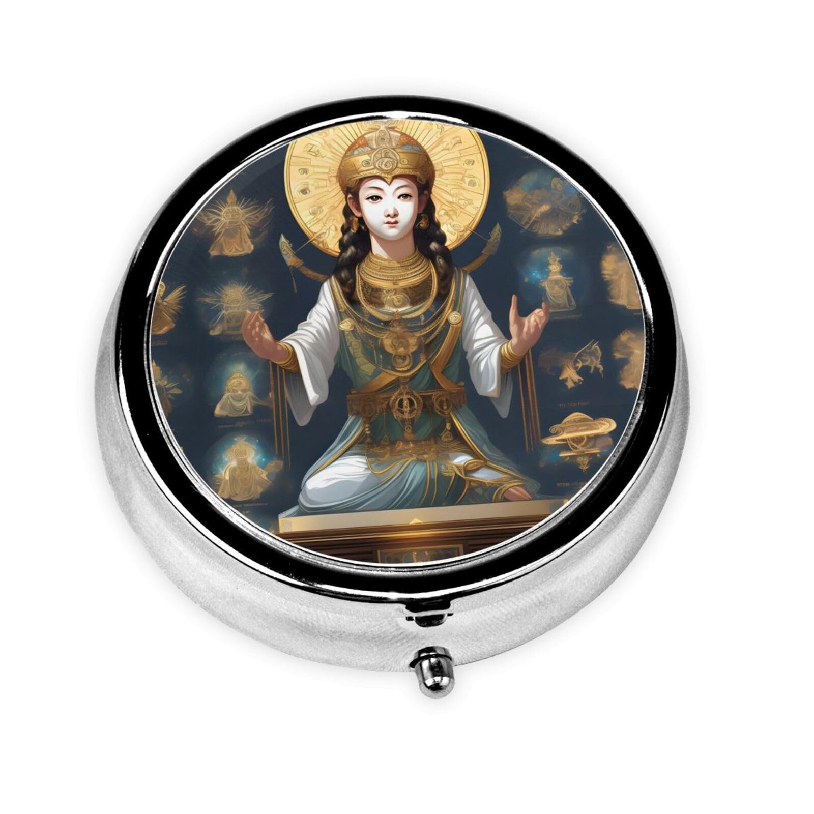 Statue Of God Round Mini Pill Box : Our Pill Box Is Made Of Metal Plated With Iron To Resist Daily Wear And Tear And Prolong Its Life.2.0 X 2.0 X 0.7 Inches (Approx. 4.6 X 4.6 X 1.8 Centimeters), #This Round Mini Pill Box Is Compact And Lightweight, With 3 Plastic Compartments And A Hinged Closure Inside. The Round Mini Pill Box Takes Up Little Space And Can Be Carried In Your Pocket Or Purse, Perfect For Traveling.
