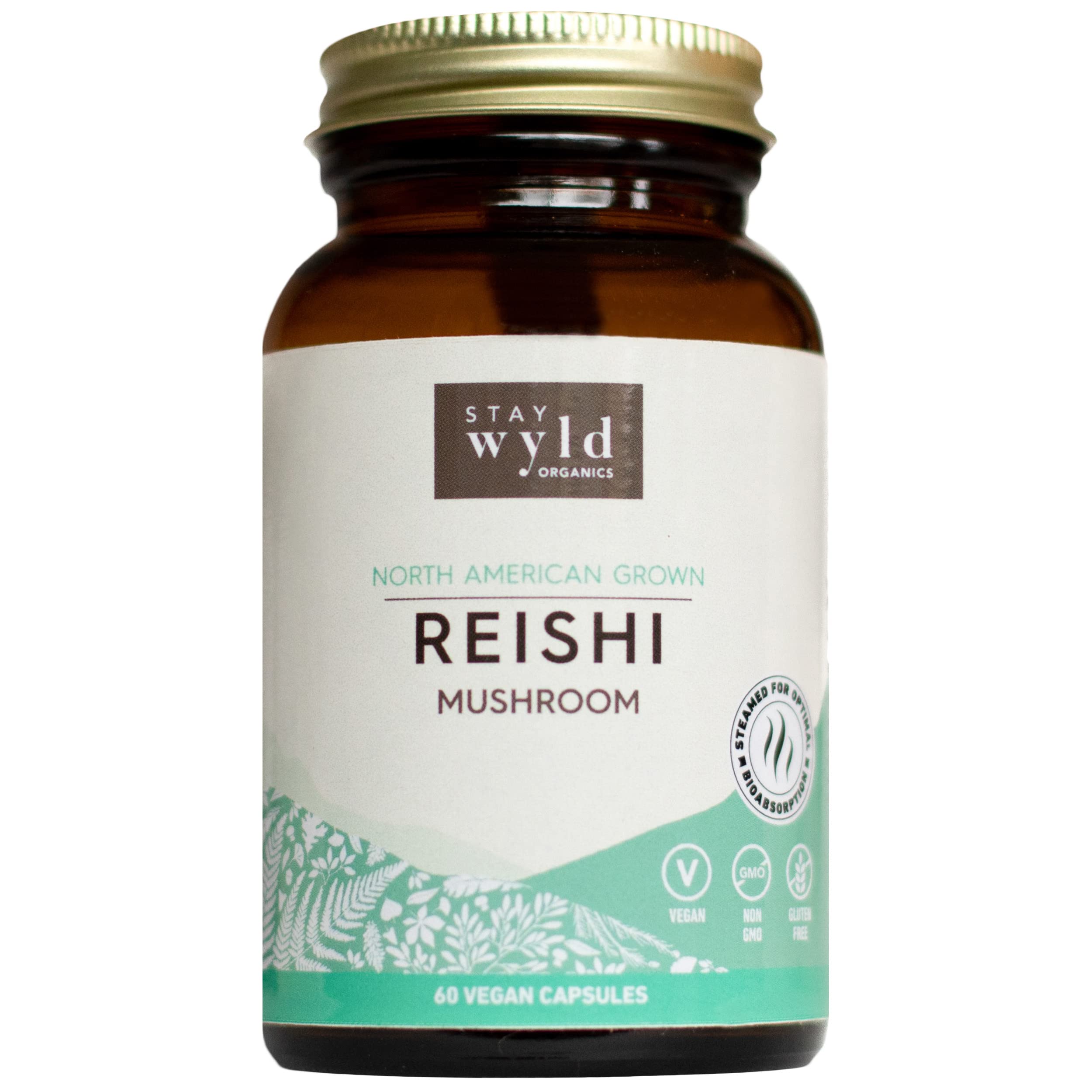 Easy to Take Mood Support Supplement: Stay Wyld Reishi medicinal mushroom capsules are perfect for that on-the-go natural energy boost. Our Reishi mushroom supplement capsules are filled with a smooth blend of Reishi fruiting bodies and mycelium making it easy to control dosage regularly. You can also take it if you're not a big fan of mushroom flavor as we are, but you love the benefits.OUR COMMITTMENT: We are committed to providing you with the highest quality Canadian grown mushrooms on the market. We performed thorough research and product development to bring you the same mushrooms we take every day. If you have any questions about our product or process, reach out to us, and we'll get you taken care of. LOCALLY-SOURCED COMMITTED TO NATURE: Staying Wyld is a state of mind fueled by the extensive benefits of mushrooms. We grow our organic mushrooms on our mushroom farm in Pemberton, BC, with strict controls on our product. We also steam extract our mushrooms to maximize their bio-availability, nutrients and benefits. Finally, we put the environment first by being 100 Plastic Free. Stay Wyld Organics mushroom supplements are Gluten-free, Non-GMO, Vegan, and contain no mercury. FEEL ENERGIZED AND CALM WITH THIS NOOTROPIC BRAIN SUPPORT SUPPLEMENT: Do you ever feel like you don't get enough sleep? Reishi mushroom supplements may help with that. Reishi mushrooms do more than help your body's natural defense. These natural energy supplements can also help give you energy by facilitating and improving sleep quality. Better sleep can lead to an improved quality of life. NATURAL NOOTROPIC SUPPLEMENT FOR BRIGHTER DAYS: Reishi mushrooms are among several mushrooms used in traditional wellness for hundreds of years. Whether you're looking to balance your energy, help you sleep, support your body's natural defense, or find the calm you need, Reishi is an exceptionally adaptogenic superfood that helps you stay wyld and grounded. MOOD SUPPORT SUPPLEMENT: Stay Wyld Reishi mushroom capsules are perfect for that on-the-go natural energy boost. Our Reishi mushroom supplement capsules are filled with a smooth blend of Reishi fruiting bodies and mycelium making it easy to control dosage regularly. You can also take it if you're not a big fan of mushroom flavor as we are, but you love the benefits.