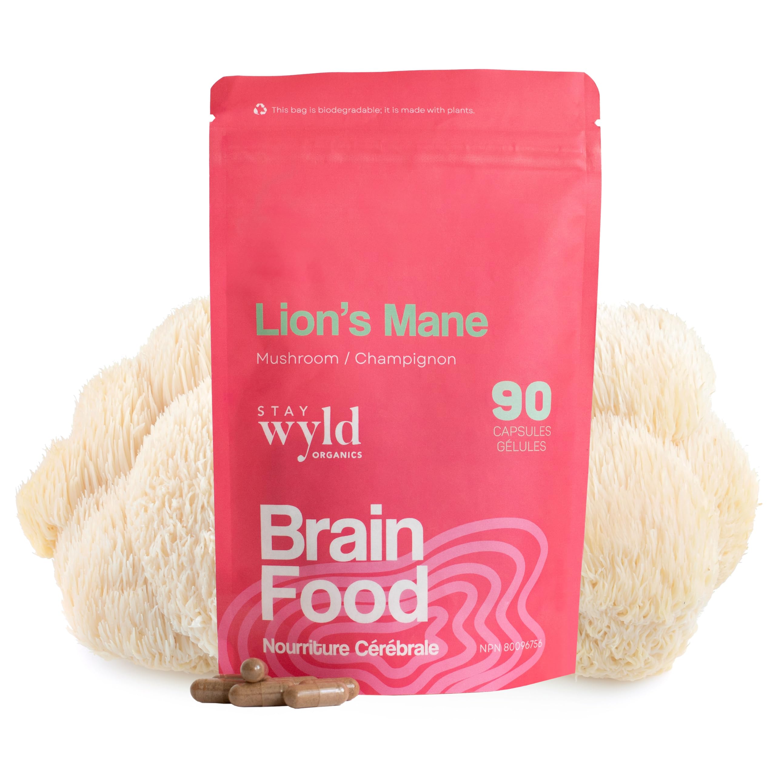 Stay Wyld Organics - Lion s Mane Mushroom Supplement Canadian Grown Lions Mane Mushroom Capsules Supplements for Focus & Clarity Natural Memory Support Organic Mushrooms 90 Capsules Pouch