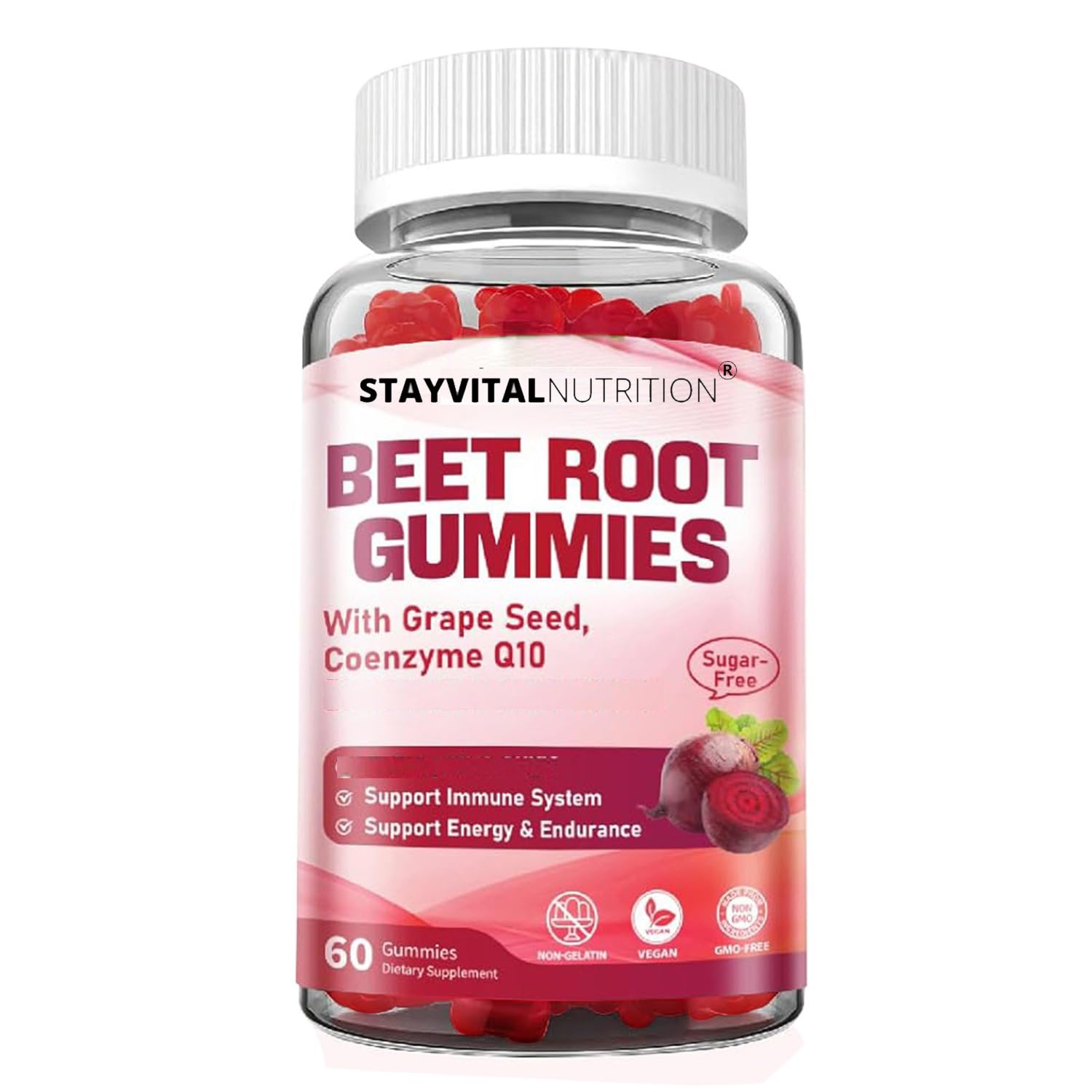 Stayvital Nutrition Beet Root Gummies with CoQ10 & Vitamin B12 Vegan Non-GMO Gluten-Free Fruit Supplement for Daily Plant-Based Nutrition