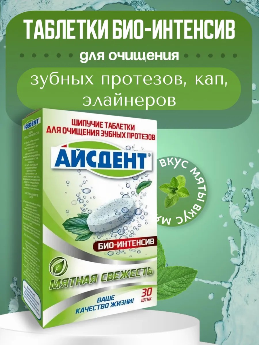 Айсдент био-интенсив отбеливающие таблетки для очищения зубных протезов