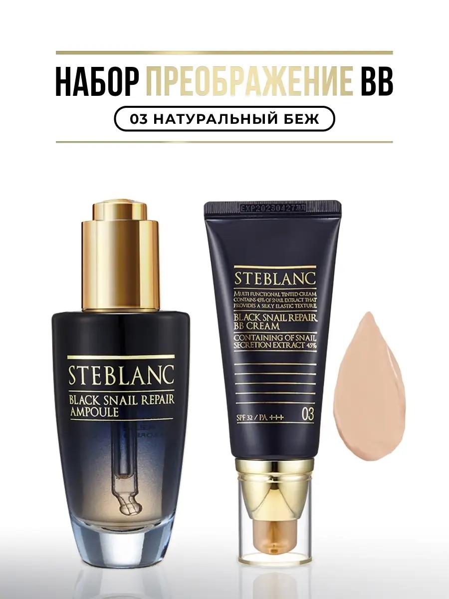 **Идеальное покрытие, естественный макияж, защита, выравнивание, разглаживание, лифтинг.**Подчёркивает естественную красоту и ретуширует нюансы.Благодаря наличию в составе комплекса из интенсивных противовоспалительных, антибактериальных и омолаживающих компонентов (фильтрат муцина черной улитки, оксид цинка, ниацинамид, пантенол, аллантоин, убихон (Q10), бета глюкан, пудра угля, пептиды, гидролизованный коллаген морского происхождения, гиалуроновая кислота) **гарантированное регенерирующее действие, омоложение и лифтинг.****Подходит для всех типов кожи, в том числе комбинированной. Способ применения и порядок нанесения средств:** нанести необходимое количество ампулы (после очищения и использования тонера) на лицо, шею и декольте лёгкими массажными до полного впитывания. Затем небольшое количество ВВ крема равномерно распределить по лицу лёгкими массажными движениями.
