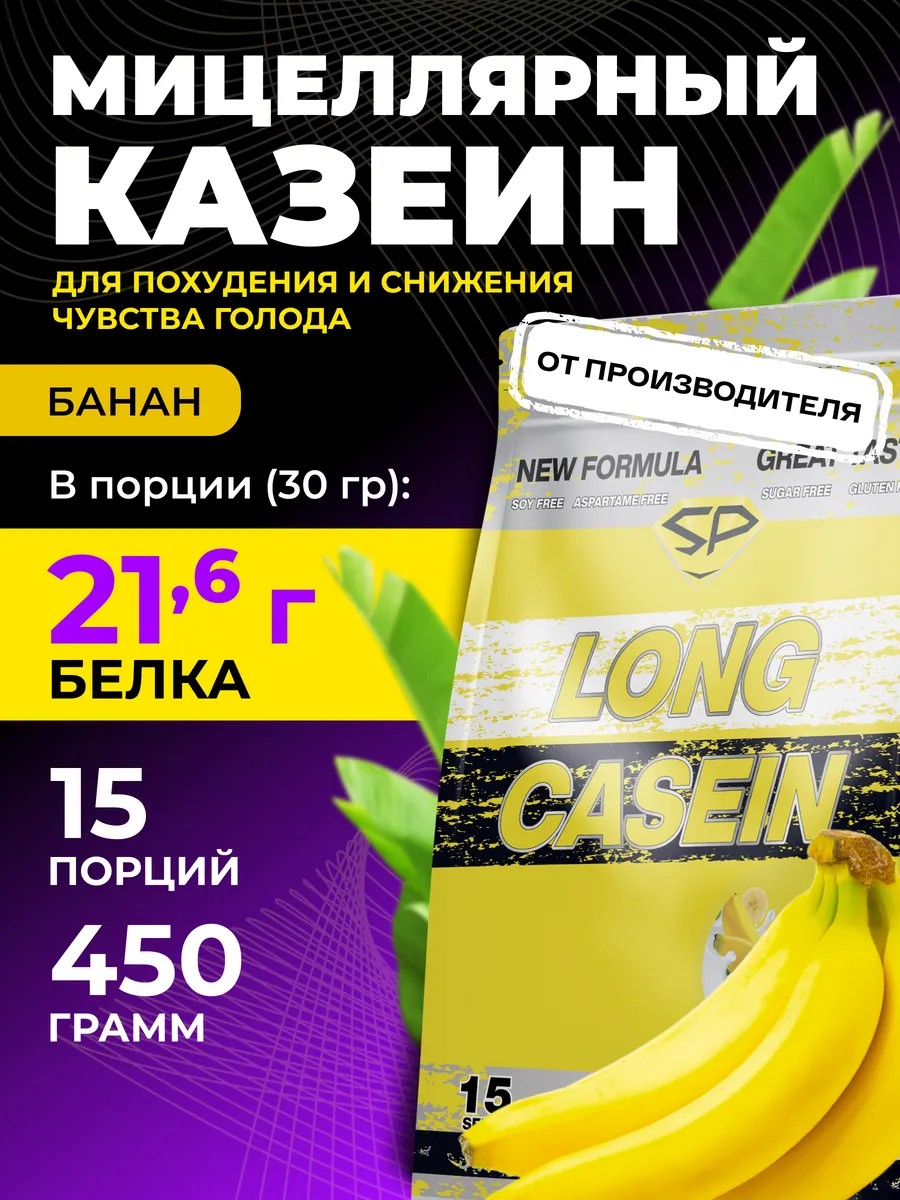 Протеин казеиновый LONG CASEIN NEW Без сахара 450г Банан