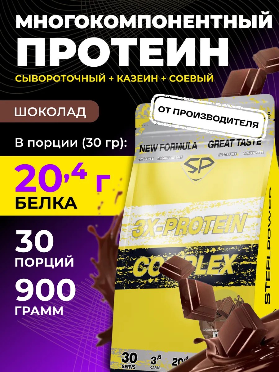 Комплексный протеин 3X PROTEIN Без сахара 900г Шоколад