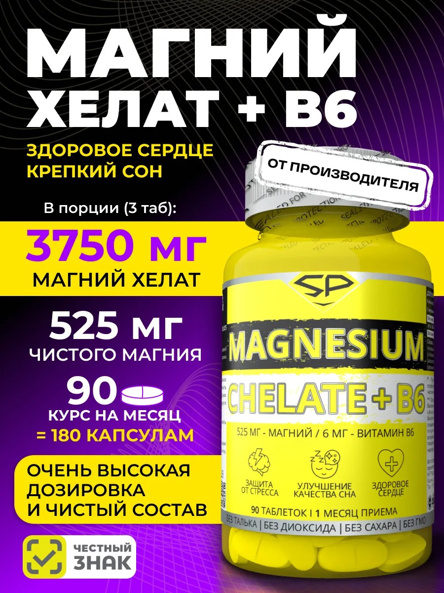 Магний хелат (бисглицинат) с витамином B6, 90 таблеток