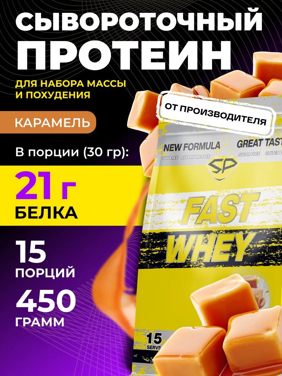 Протеин сывороточный FAST WHEY NEW Без сахара 450г Карамель