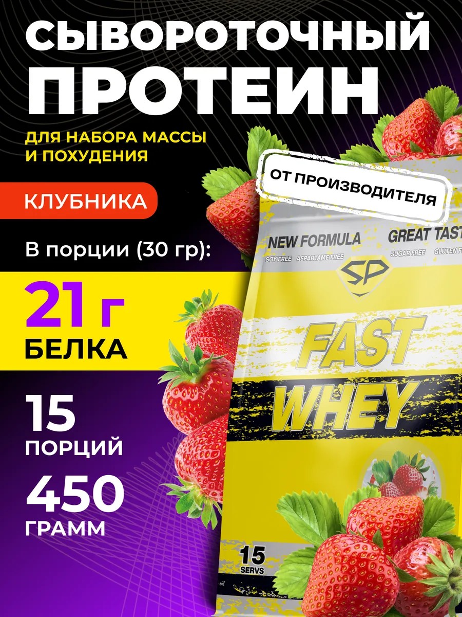 Протеин сывороточный FAST WHEY NEW Без сахара 450г Клубника