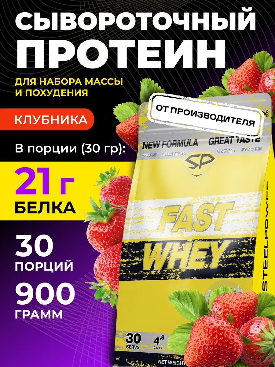 Протеин сывороточный FAST WHEY NEW Без сахара 900г Клубника