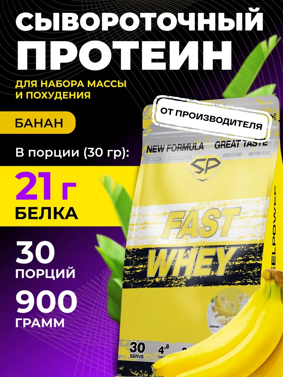 Протеин сывороточный FAST WHEY NEW Без сахара 900г Банан