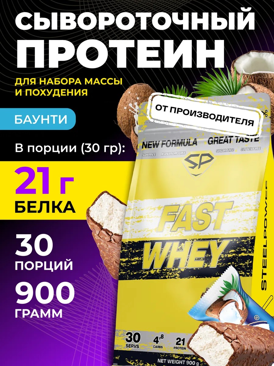 Протеин сывороточный FAST WHEY NEW Без сахара 900г Баунти