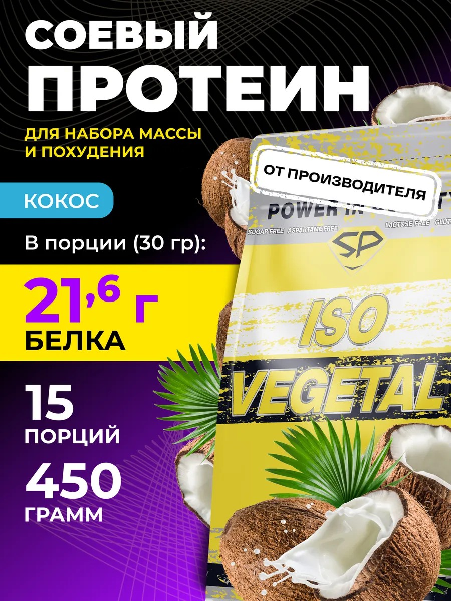 Соевый протеин ISO VEGETAL NEW Вегетарианский 450г Кокос