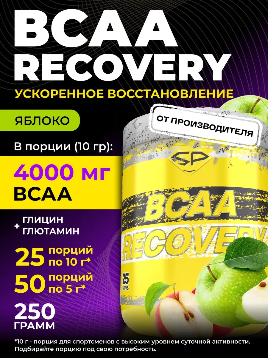 ВСАА RECOVERY Глютамин Глицин Без сахара 250г Яблоко