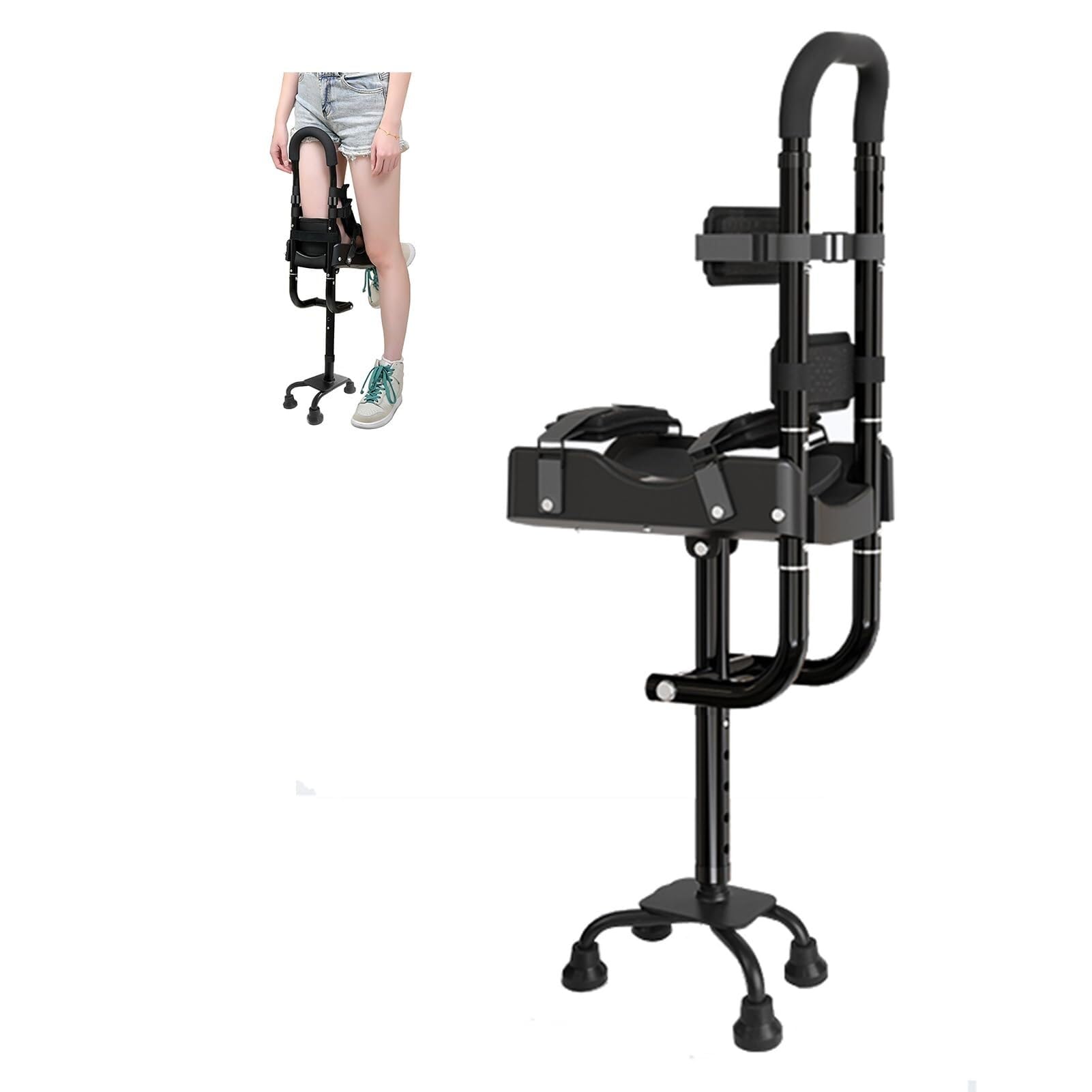Hands-free crutches can replace crutches or knee scooters. It provides you hands-free, pain-free functional mobility. It is suitable for most people, but not for everyone.Features:Hands-free, Painless MovementFunction IndependentTool-free AssemblyGo Up and Down Stairs Safely and EasilyEasily Convert to Left or Right LegButton Height Adjustment for Upper and Lower Leg HeightFully Adjustable Belt with Comfort PadQuick Release Buckle-open close in a Few SecondsErgonomic Knee Platform, Three-layer, Dual-density CushionNon-slip, Replaceable Treadspecification:Name: Hands-free leg supportMain materials: PP, aluminum alloy,EVAApplicable people: adultsMaximum load: 220 poundsDiseases: Ligament injuries, fractures and sprains, difficulty in mobilityWeight: 1.5kgPackage List:1 Steerable Knee WalkerIts unique design allows you to perform daily tasks more confidently and reduces the risk of further injury. Wide range of uses-can not be used as a walking stick, but it is an ideal rehabilitation aid, and can be used with a rehabilitation belt protector. Your thigh muscles are the same as usual during use, so there will be no abnormal strains like standard crutches in any part of the body. This lightweight and strong knee walker has a strong load-bearing capacity and can withstand 220 pounds, ensuring you feel comfortable, stable and safe no matter where you are. Height adjustable-upper leg calf length can be adjusted, upper leg length adjustment range is 38cm-42.5cm, calf length adjustment range is 38-58cm.