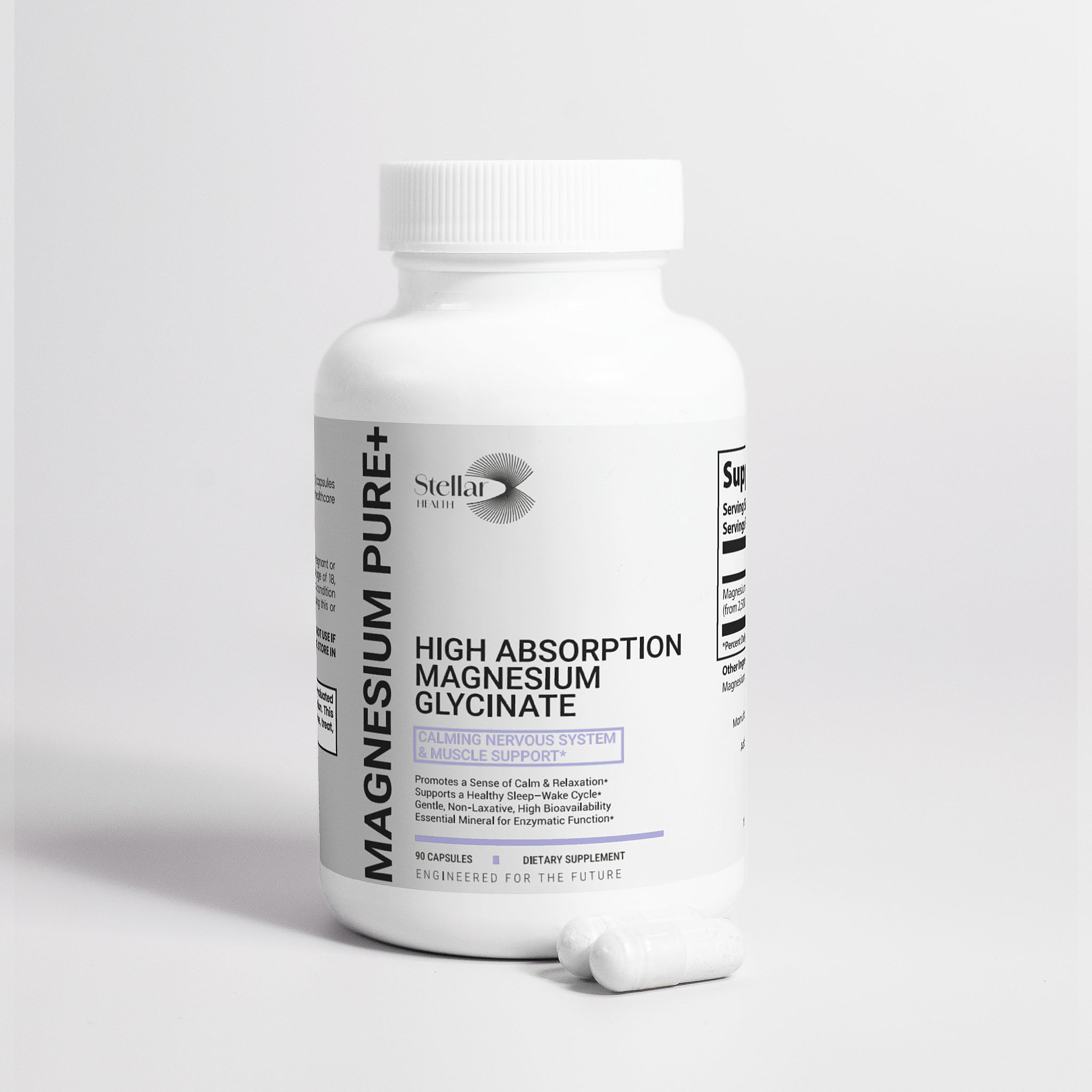 Stellar Health Magnesium Pure+ Magnesium Glycinate Capsules Chelated Magnesium Complex Magnesium Supplement for Sleep Muscle & Relaxation Support 90 Capsules